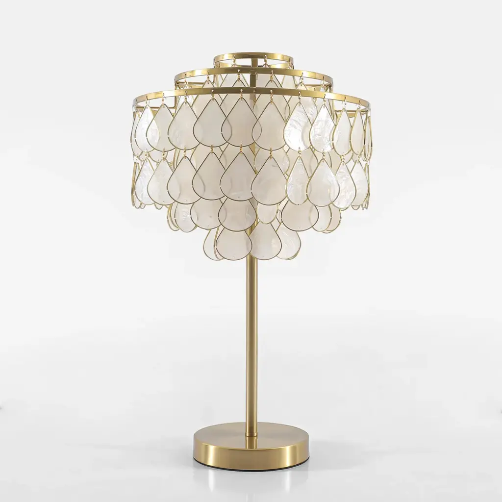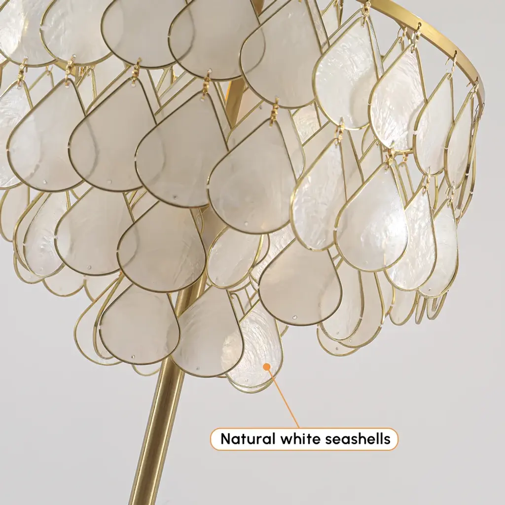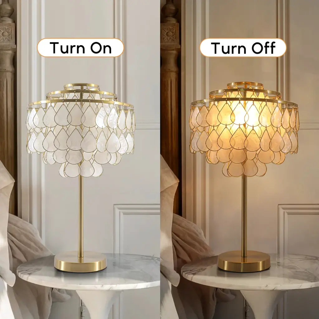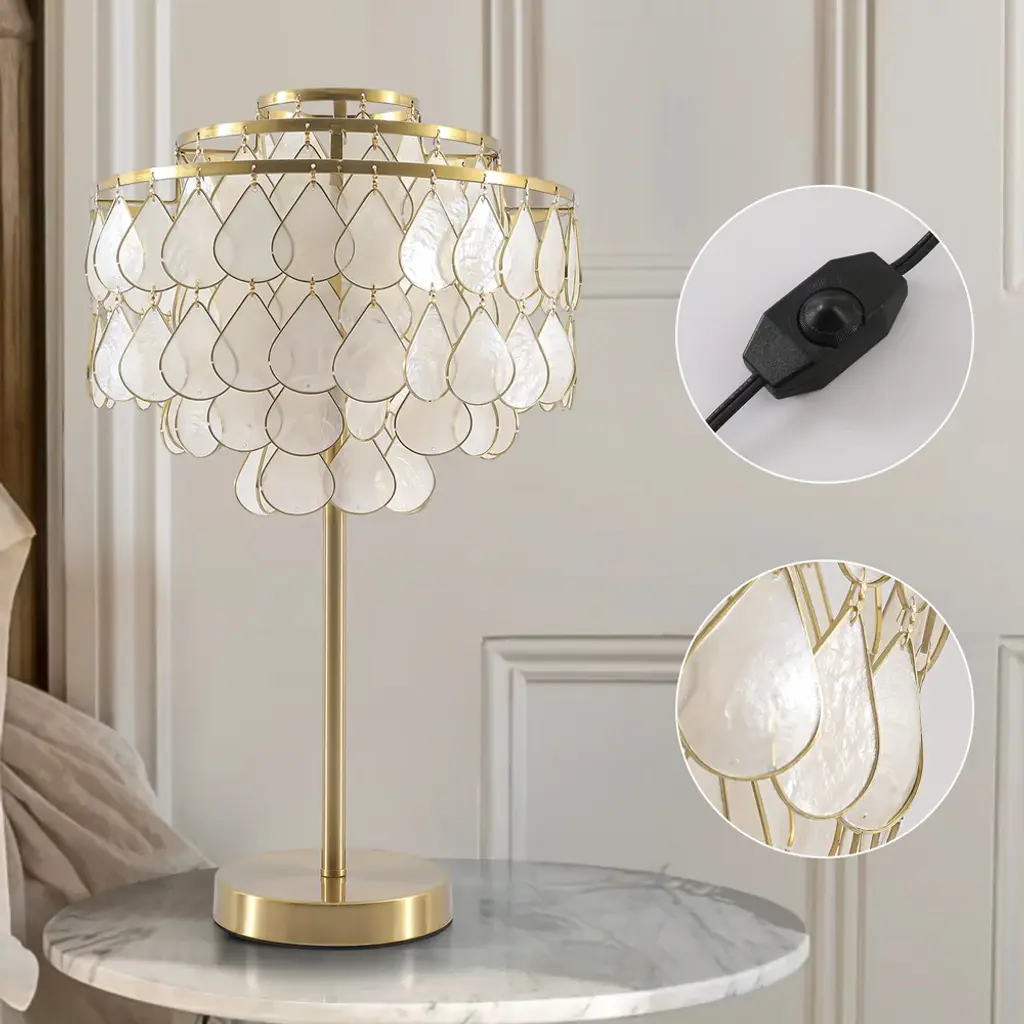 Elevate your space with this stunning table lamp featuring natural seashells and a sleek iron frame. The delicate teardrop shell design creates a captivating glow, adding a touch of coastal elegance to any room. Perfect for bedside tables or living spaces, it brings warmth and charm to your home.