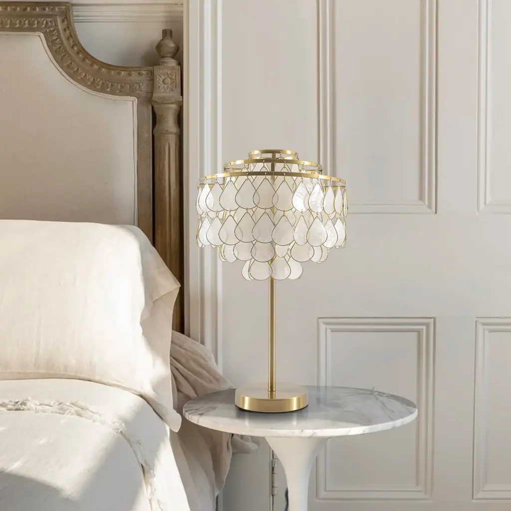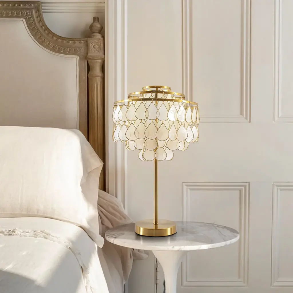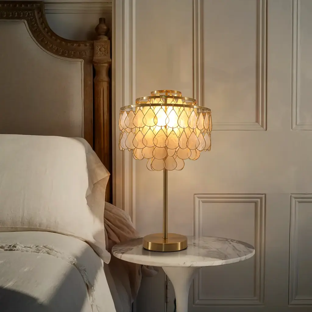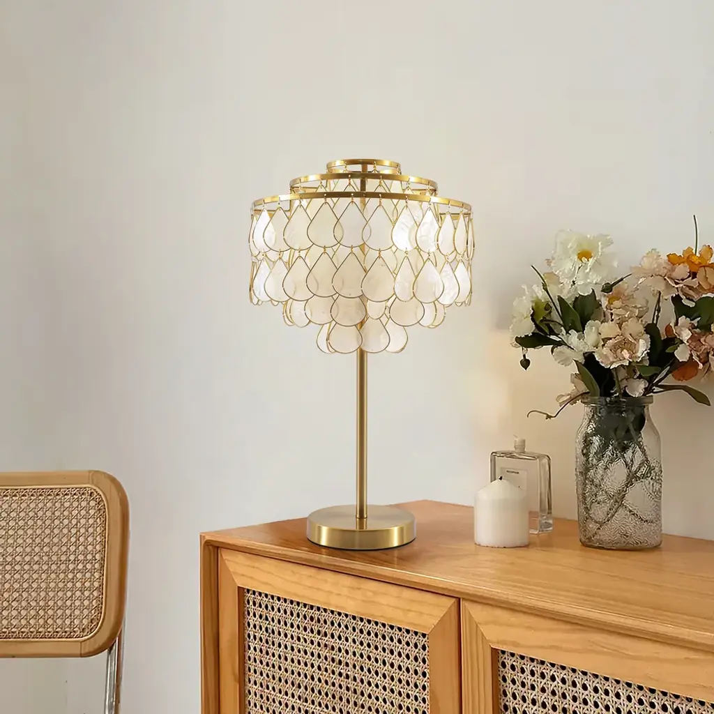 Elevate your space with this stunning table lamp featuring natural seashells and a sleek iron frame. The delicate teardrop shell design creates a captivating glow, adding a touch of coastal elegance to any room. Perfect for bedside tables or living spaces, it brings warmth and charm to your home.