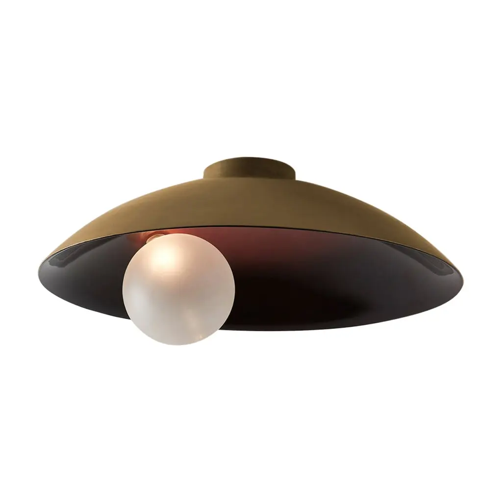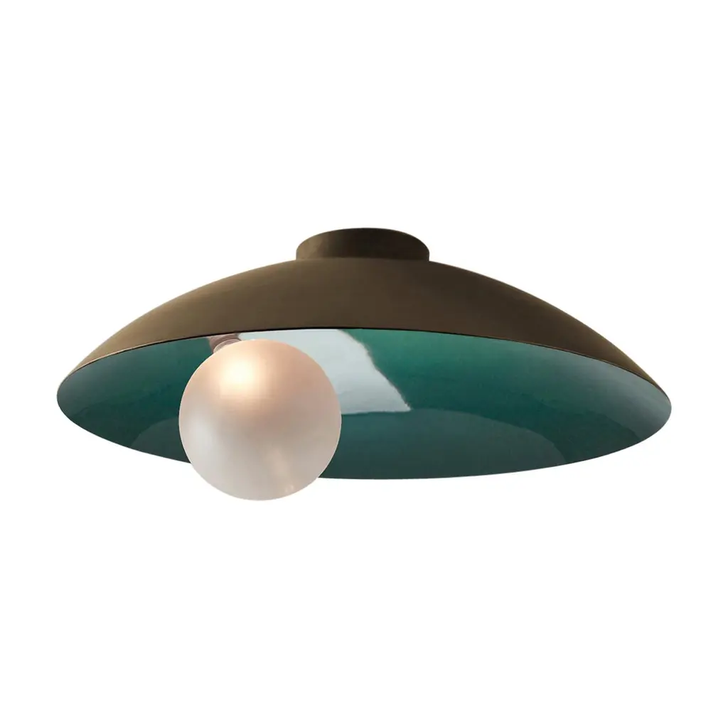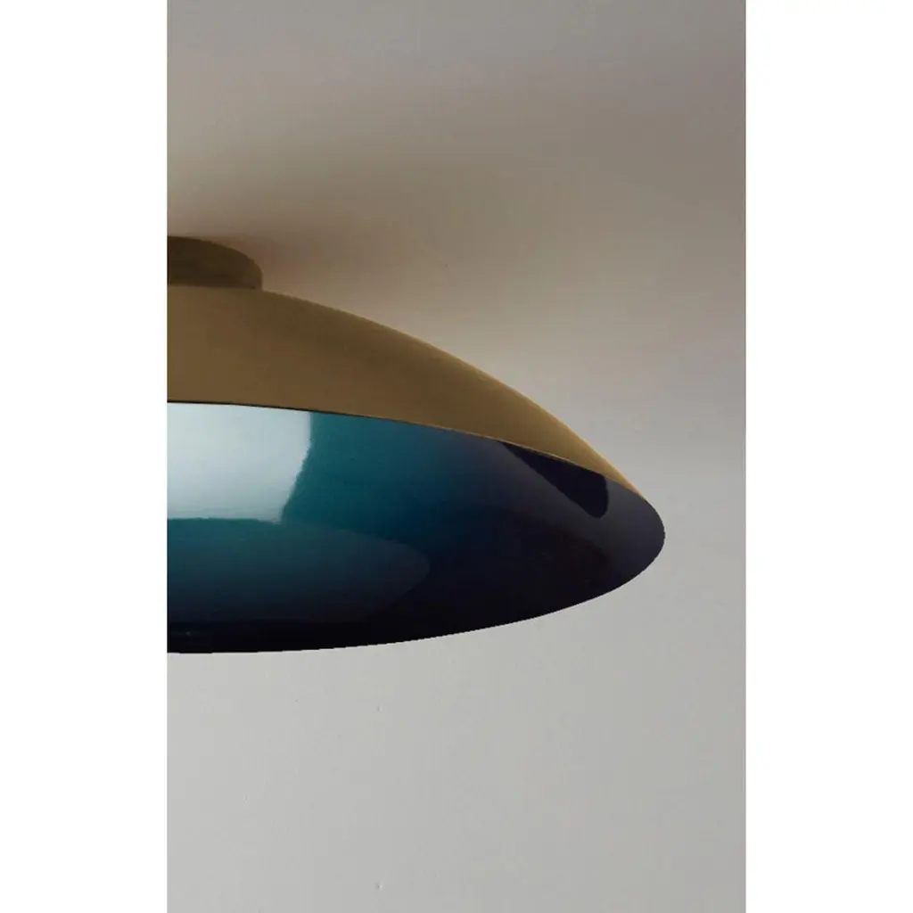 Luxury Midnight Blue and Brushed Brass Ceiling Mounted Lamp Oyster by Carla BazDimensions: Ø 70 x H 26 cm.Materials: Brushed brass.Weight: 9 kg.Available in brushed brass, copper or bronze finishes. Available in different color/ finish options. Please contact us. Oyster is a series of sculptural lighting pieces that were developed in 2016. Wanting to explore the idea of customization and adapting designs to different functionalities and scales, we developed this new series available in 3 different sizes and a selection of bold colors offering choices that are eccentric and personal.All our lamps can be wired according to each country. If sold to the USA it will be wired for the USA for instance. Carla Baz is a French-Lebanese designer dedicated to foster synergies between her innovative approach to furniture/lighting and the very accomplished skills of Lebanese artisans. After studying interior architecture at ESAG Penninghen in Paris, she pursued a Masters in product design for the luxury industry at the University of Art and Design Lausanne (ECAL) where she had the opportunity to work on several projects under the supervision of international designers such as Ronan Bouroullec, BarberOsgerby, Marti Guixé, Pierre Charpin and Umberto and Fernando Campana. She then engaged in diverse professional experiences, working in London for Burberry, Vivienne Westwood and Zaha Hadid until she felt it was time to explore her own lines. Thus began a very inspiring sequence of experiments which resulted in small editions of her sculptural and functional furniture and earned her the Brussels based Boghossian Fondation’s 2013 Design Prize. All her projects are rooted in that elaborate relationship where innovative ideas meet noble materials that are worked by hand. Within that journey to their process, unique and elegant products are born that hold their place in our landscape. Carla has recently been awarded the 'Rising Talent' award at Maison & Objet’s 2018 September edition.