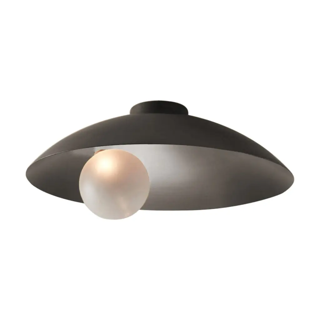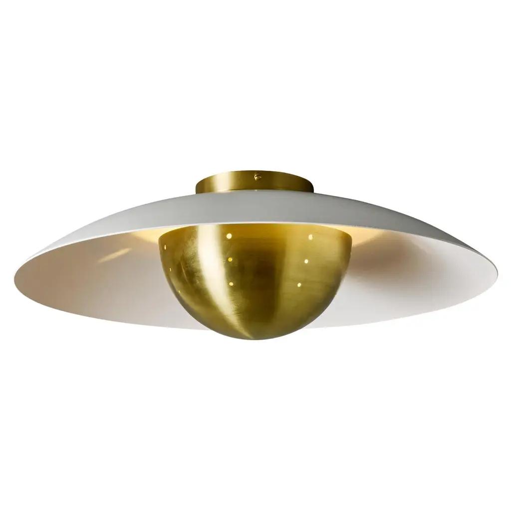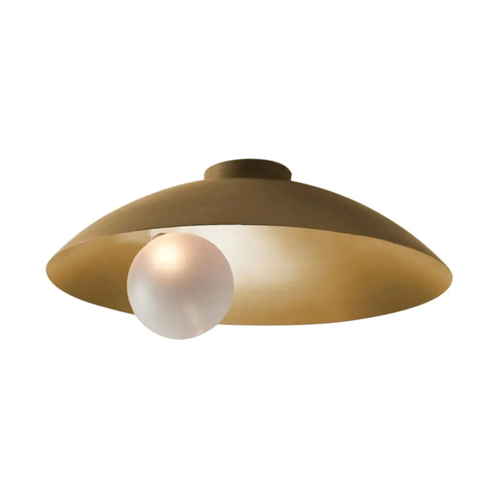Luxury Midnight Blue and Brushed Brass Ceiling Mounted Lamp Oyster by Carla BazDimensions: Ø 70 x H 26 cm.Materials: Brushed brass.Weight: 9 kg.Available in brushed brass, copper or bronze finishes. Available in different color/ finish options. Please contact us. Oyster is a series of sculptural lighting pieces that were developed in 2016. Wanting to explore the idea of customization and adapting designs to different functionalities and scales, we developed this new series available in 3 different sizes and a selection of bold colors offering choices that are eccentric and personal.All our lamps can be wired according to each country. If sold to the USA it will be wired for the USA for instance. Carla Baz is a French-Lebanese designer dedicated to foster synergies between her innovative approach to furniture/lighting and the very accomplished skills of Lebanese artisans. After studying interior architecture at ESAG Penninghen in Paris, she pursued a Masters in product design for the luxury industry at the University of Art and Design Lausanne (ECAL) where she had the opportunity to work on several projects under the supervision of international designers such as Ronan Bouroullec, BarberOsgerby, Marti Guixé, Pierre Charpin and Umberto and Fernando Campana. She then engaged in diverse professional experiences, working in London for Burberry, Vivienne Westwood and Zaha Hadid until she felt it was time to explore her own lines. Thus began a very inspiring sequence of experiments which resulted in small editions of her sculptural and functional furniture and earned her the Brussels based Boghossian Fondation’s 2013 Design Prize. All her projects are rooted in that elaborate relationship where innovative ideas meet noble materials that are worked by hand. Within that journey to their process, unique and elegant products are born that hold their place in our landscape. Carla has recently been awarded the 'Rising Talent' award at Maison & Objet’s 2018 September edition.