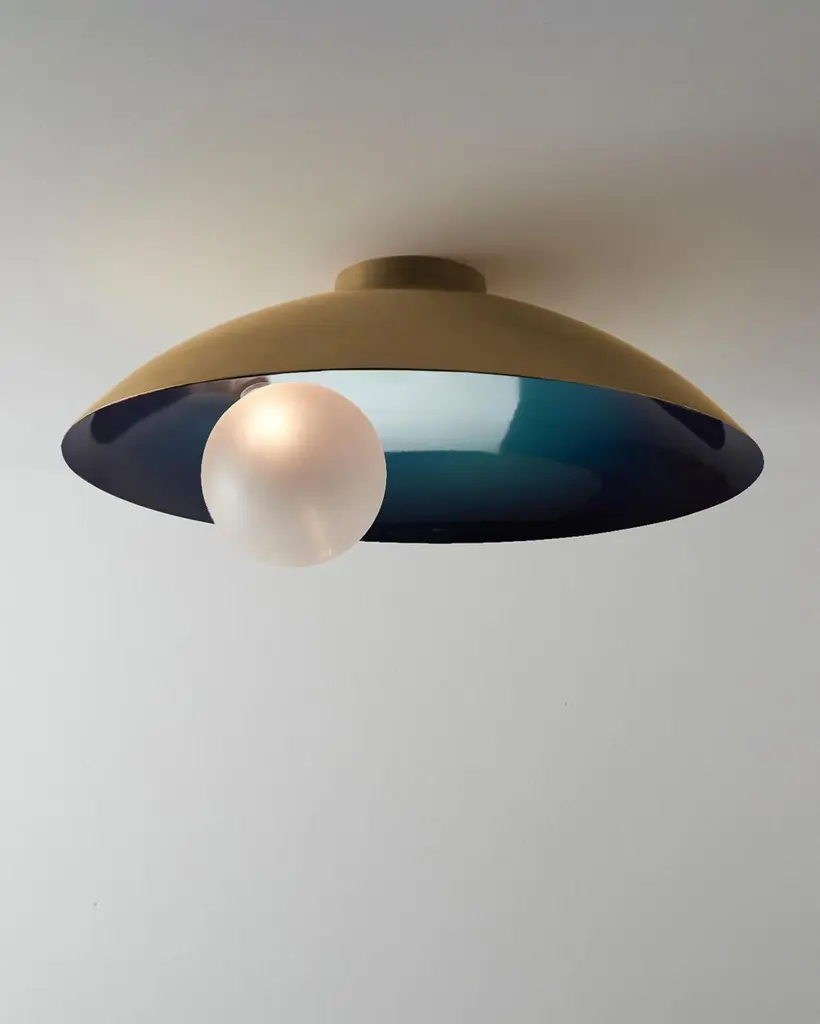 Luxury Midnight Blue And Brushed Brass Ceiling Mounted Lamp Oyster By Carla Baz