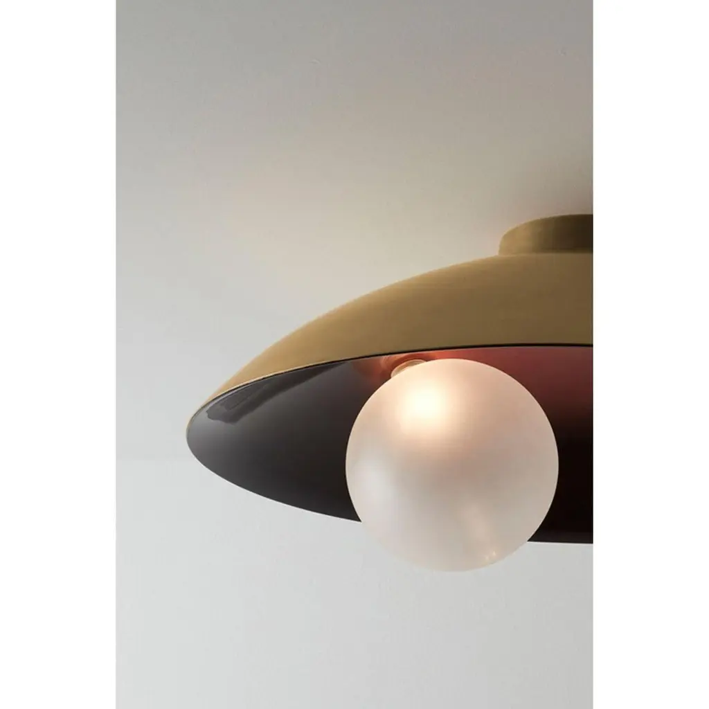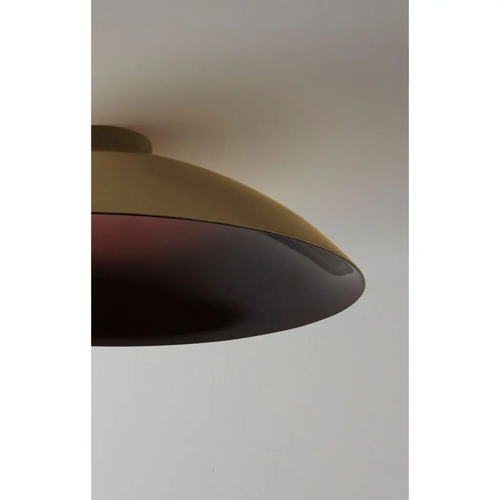 Luxury Unique Burgundy & Brushed Brass Ceiling Mounted Lamp Oyster by Carla BazDimensions: Ø 70 x H 26 cm.Materials: Brushed brass.Weight: 9 kg.Available in brushed brass, copper or bronze finishes. Available in different color/ finish options. Please contact us. Oyster is a series of sculptural lighting pieces that were developed in 2016. Wanting to explore the idea of customization and adapting designs to different functionalities and scales, we developed this new series available in 3 different sizes and a selection of bold colors offering choices that are eccentric and personal.All our lamps can be wired according to each country. If sold to the USA it will be wired for the USA for instance. Carla Baz is a French-Lebanese designer dedicated to foster synergies between her innovative approach to furniture/lighting and the very accomplished skills of Lebanese artisans. After studying interior architecture at ESAG Penninghen in Paris, she pursued a Masters in product design for the luxury industry at the University of Art and Design Lausanne (ECAL) where she had the opportunity to work on several projects under the supervision of international designers such as Ronan Bouroullec, BarberOsgerby, Marti Guixé, Pierre Charpin and Umberto and Fernando Campana. She then engaged in diverse professional experiences, working in London for Burberry, Vivienne Westwood and Zaha Hadid until she felt it was time to explore her own lines. Thus began a very inspiring sequence of experiments which resulted in small editions of her sculptural and functional furniture and earned her the Brussels based Boghossian Fondation’s 2013 Design Prize. All her projects are rooted in that elaborate relationship where innovative ideas meet noble materials that are worked by hand. Within that journey to their process, unique and elegant products are born that hold their place in our landscape. Carla has recently been awarded the 'Rising Talent' award at Maison & Objet’s 2018 September edition.