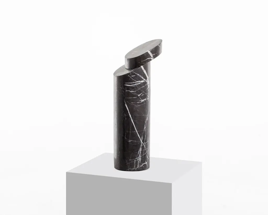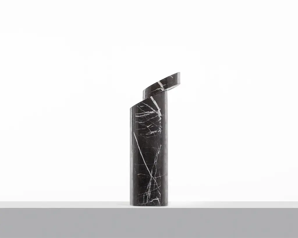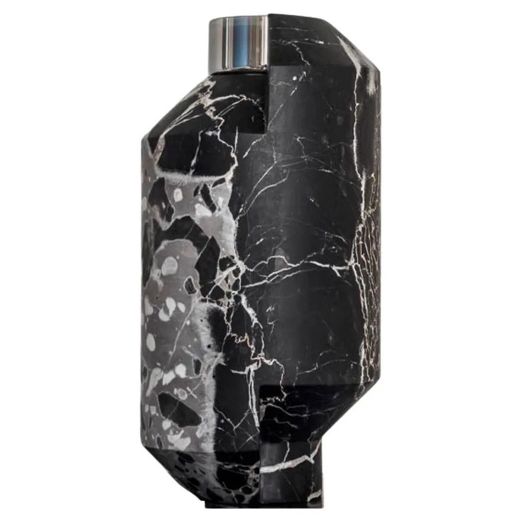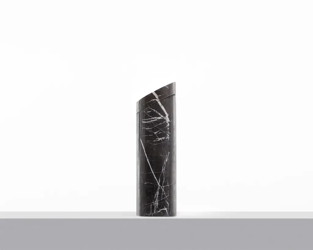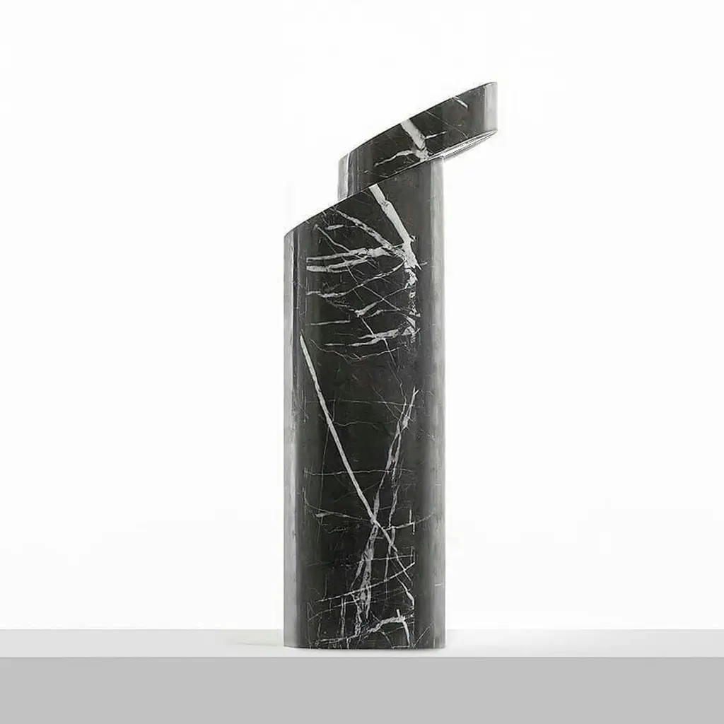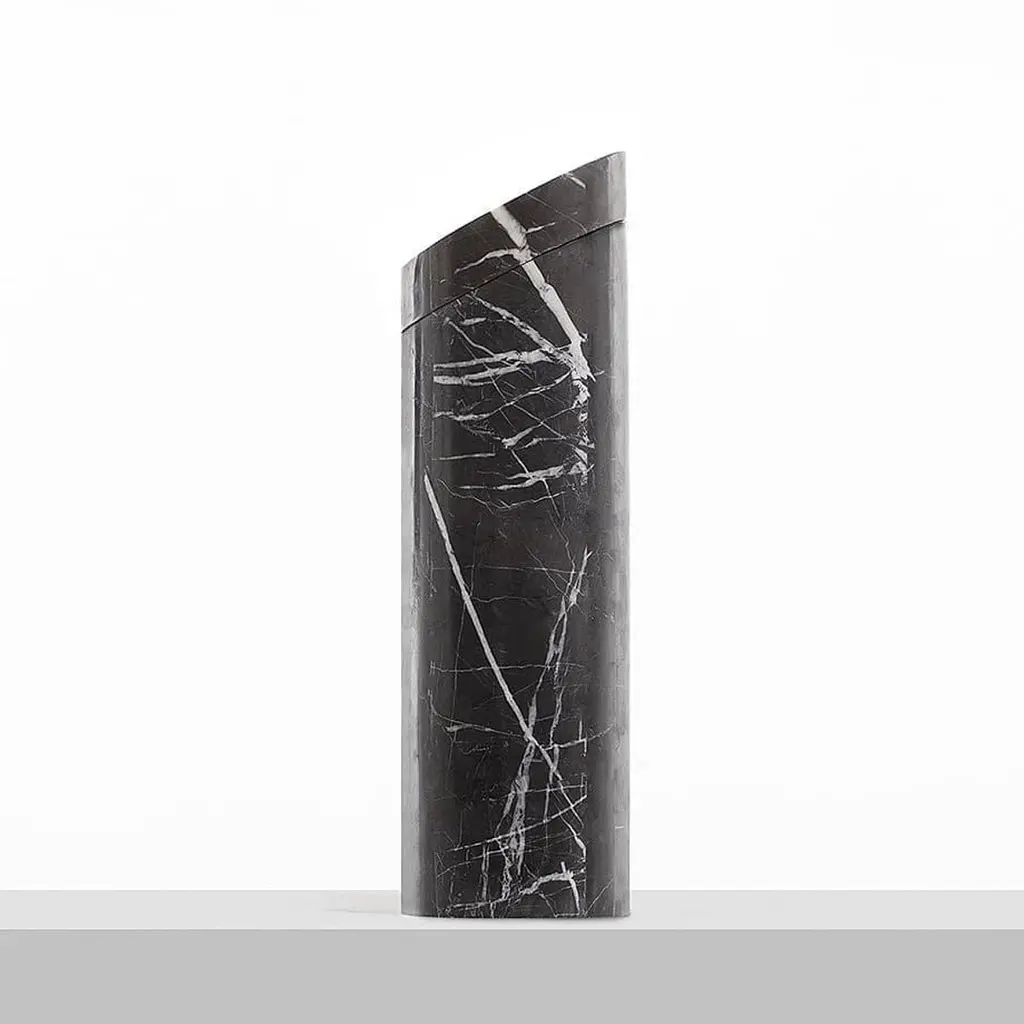Luxury Unique Cylinder Black Sculptural Natural Marble Lamp Doric Carlos Aucejo