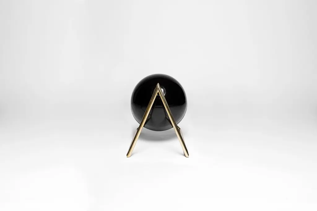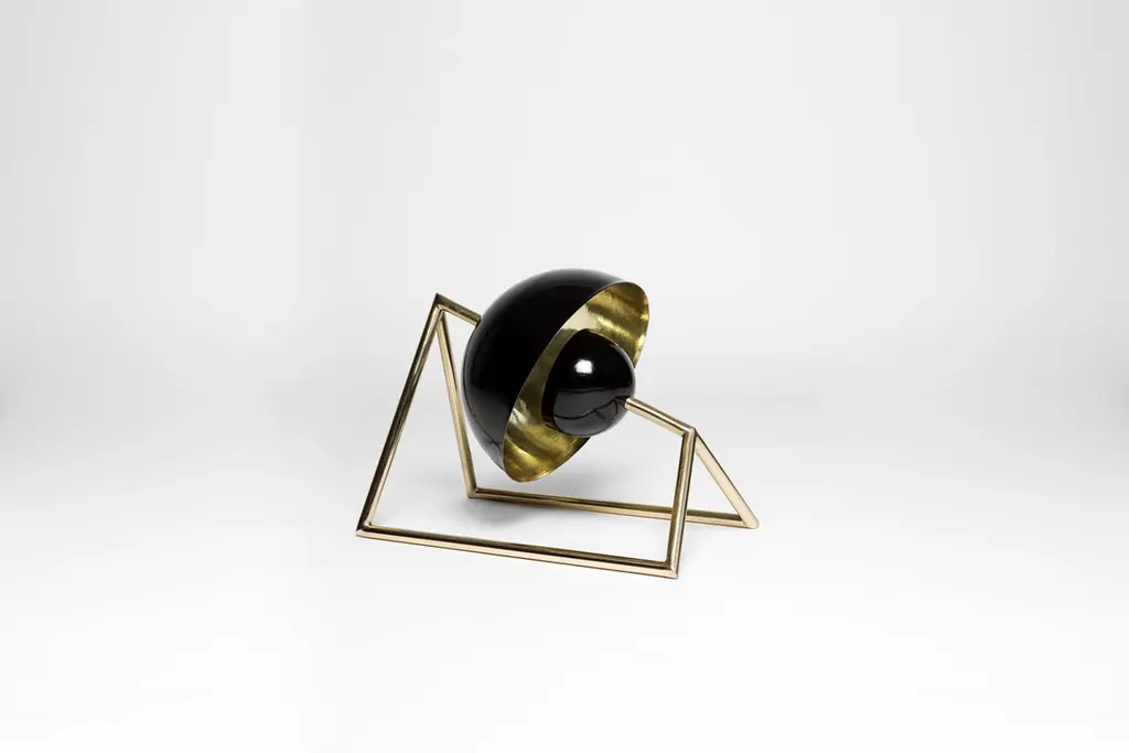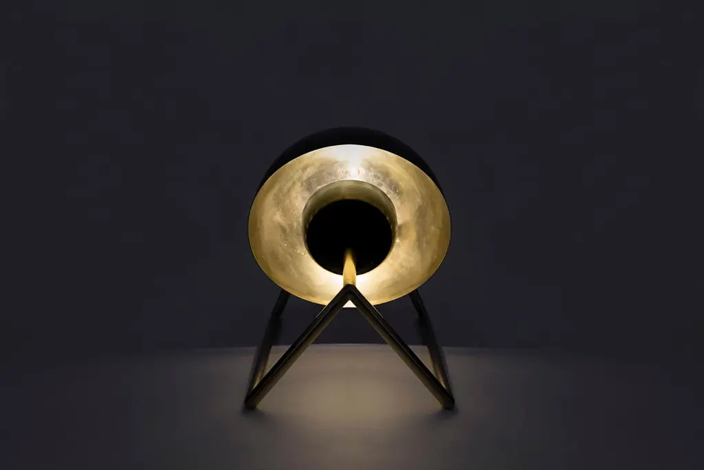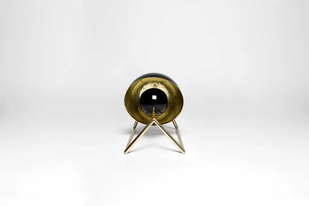 Luz lamp by Nomade Atelier.Dimensions: D 20 x W 34 x H 32 cm.Material: brass, golden hued LED lighting.Weight: 8 kg.All our lamps can be wired according to each country. If sold to the USA it will be wired for the USA for instance.Inspired by the first photographs of Pluto, this Nomade Atelier table lamp bounces off golden hued LED light from within its lacquered brass dome, thus evoking the meeting of heavenly bodies. Its linear design is reminiscent of the Bauhaus era: LUZ(14.07.15)..Nomade Atelier is an exclusive art, design and production studio, headed by Mexican visual artist Diana Quintero Vallejo and French-Moroccan architect Ismael Bachri.Founded in 2012, this project is for us a great laboratory for learning and experimenting with materials and concepts. We are a studio dedicated to the design of ideas that take shape with the manufacture of custom-made objects and furniture for residential, public and commercial spaces, as well as artistic, scenographic and museum installations.