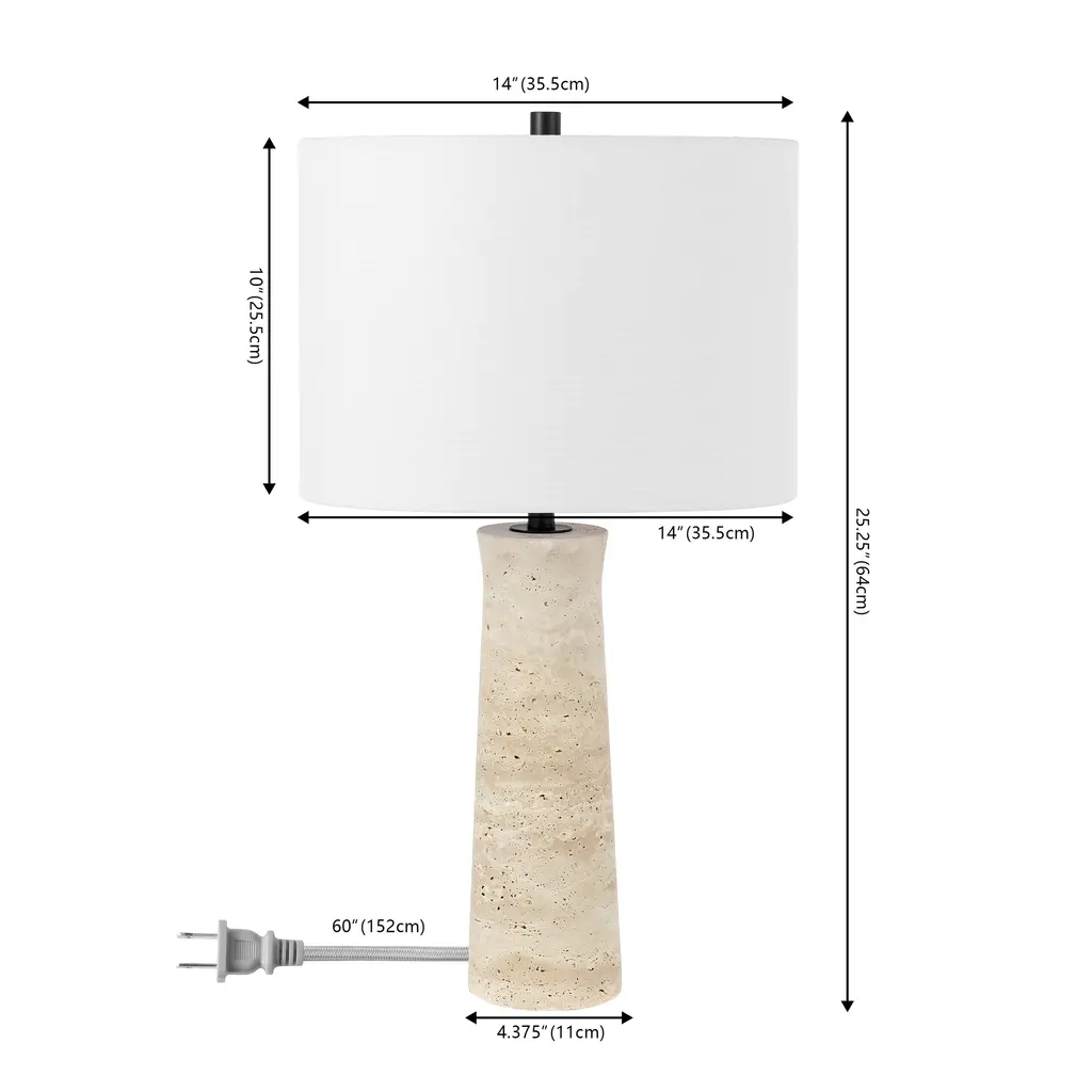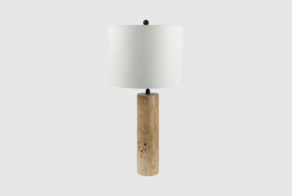 Lynnie Travertine Table Lamp, Ivory