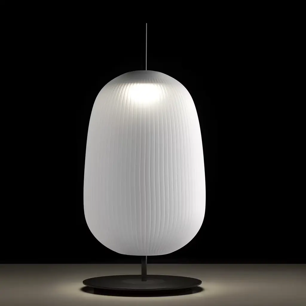 Characterized by a cool lounge vibe, the Maat Frosted Glass Table Lamp can be completed with a hidden LED to create an original illumination effect. The frosted glass shade features a vertical ribbing pattern. Also available in emerald green glass. Light source: 7 W LED 2700 K. Cable: 200 cm.