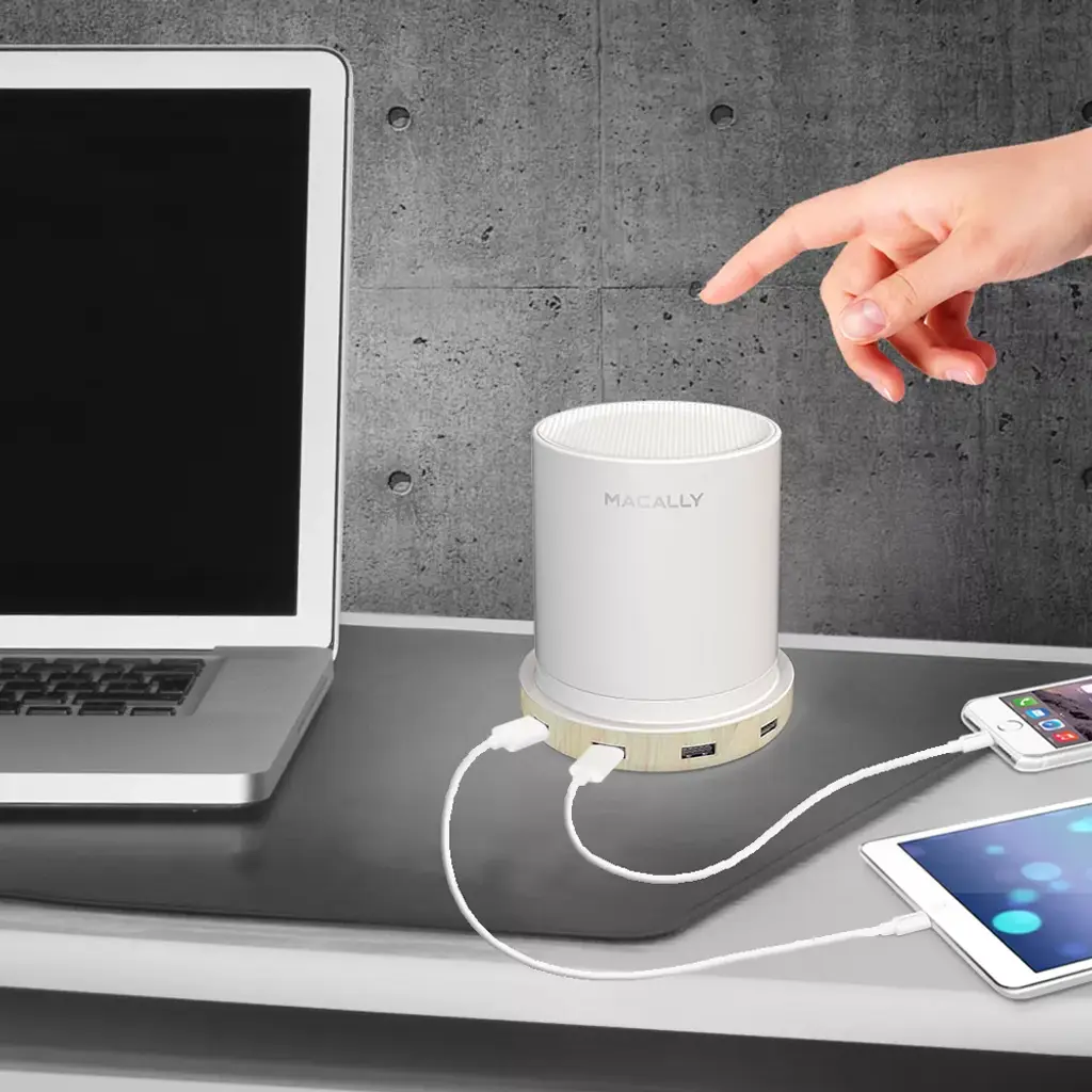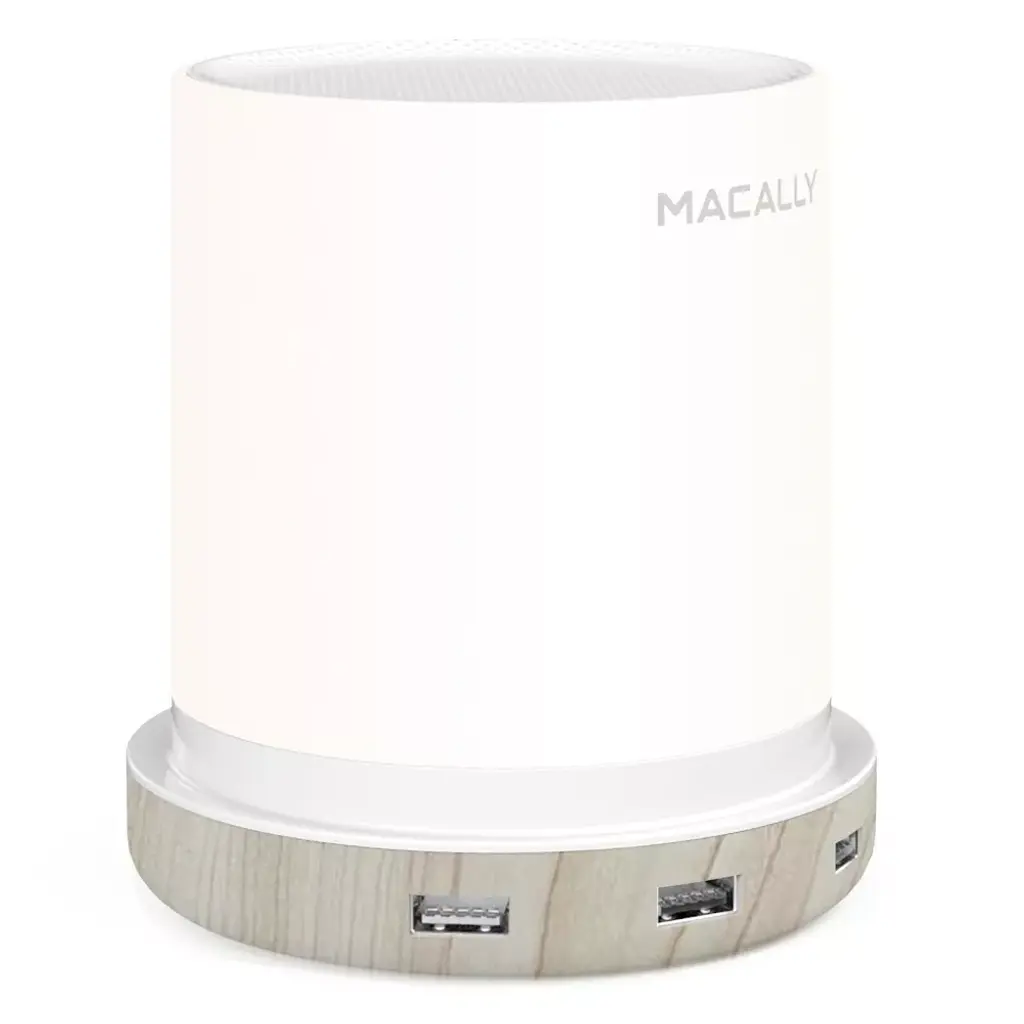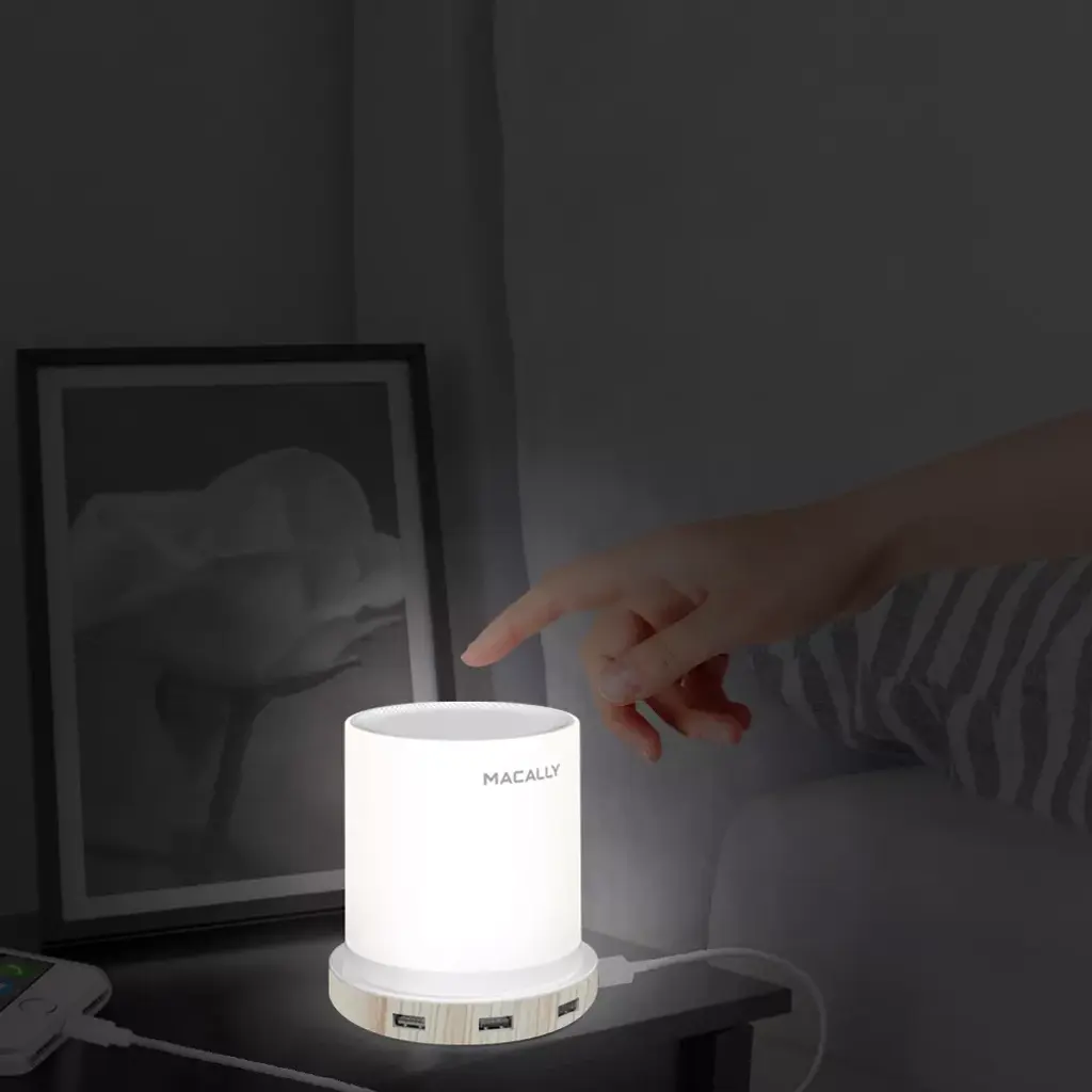 Macally Table Bedside Lamp with USB Ports - 4 Fast Charging Ports and Touch Control - USB Lamp with Dimmable Warm Light - Perfect as Small Bedside Lamp for Nightstand or Bedside Night Light - WoodPerfect Bedroom Companion: Our nightstand lamp adds practicality and convenience to your bedroom as it transforms your table into a charging station with 4 Smart IC USB ports to charge smartphones, tablets, and all other devices quickly and safely.Touch Activated: This easy to use USB touch lamp will create a warm and pleasant atmosphere with just your fingertips. Simply tap the light to turn it on/off or switch between modes.Dimmable Lighting: With 3 levels of brightness and 4 stage controls (dim, mid, bright, off), the USB bedroom lamp's cozy white lighting (2700K) gives you the option to select the perfect lighting level for any situation or if you do not want to bother those around you.Simple & Efficient: The compact nature and features of this USB lamp eliminate the need for extra chargers, outlets, and accessories reducing the clutter on your nightstand. The small lamp just works.Ease of Mind: At Macally we want to ensure that you can go to bed peacefully and worry-free. Our USB table lamp is equipped with SMART IC charging therefore your devices are protected from overcharging and short circuits.