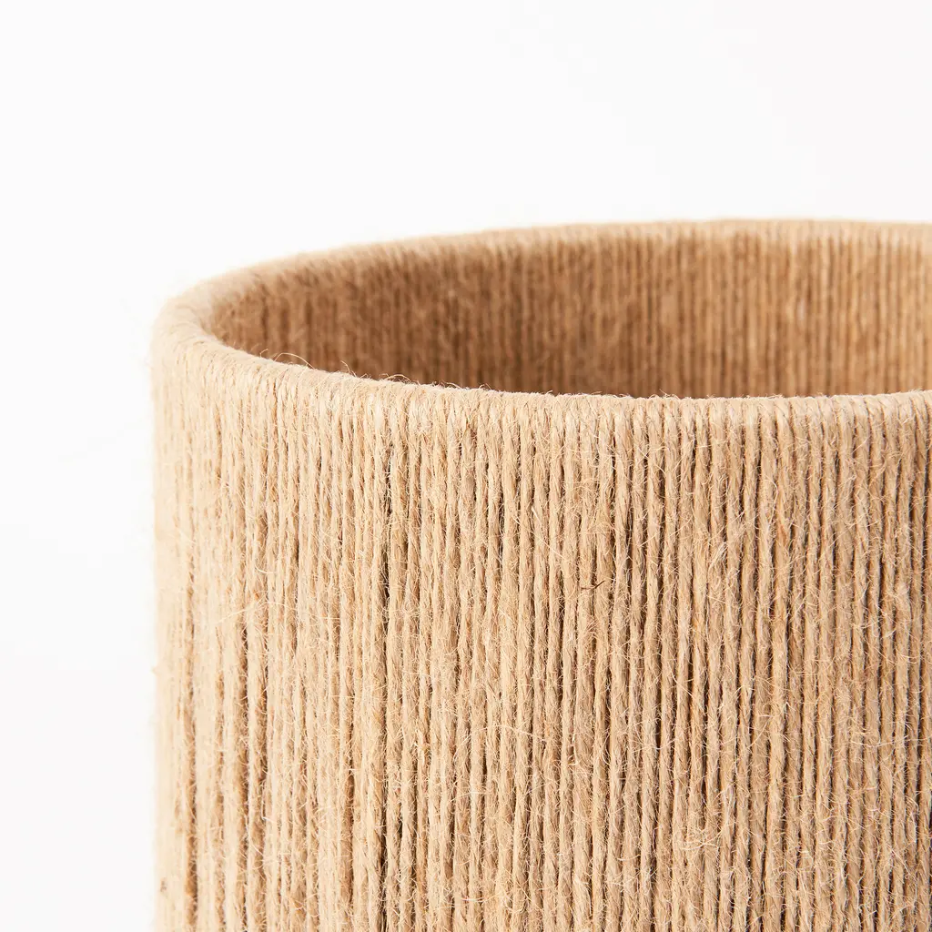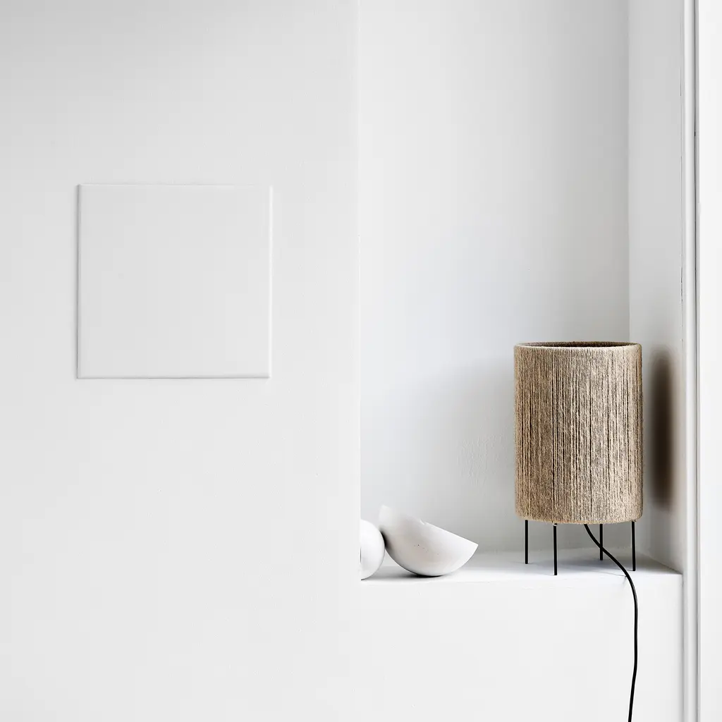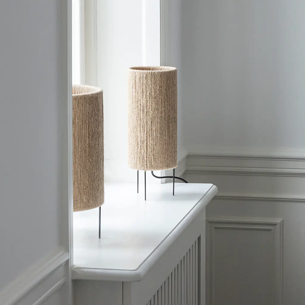 Inspired by calmness and the Danish concept of hygge, the RO lamp series brings extraordinary warmth to interiors. Designer Kim Richardt created the collection for Made by Hand. Inspired by craft traditions from the 1920s, the RO Table Lamp features a tactile shade made by covering an iron frame with a jute yarn. The name refers to the Danish word “ro”, which can mean rest, calmness, and serenity. The lamp has a simple cylindrical shape and three blackened iron legs. Even when not in use, it easily doubles as a decorative accent, adding a natural texture to a room’s decor. Turning on the light illuminates the jute cord from within, highlighting the beauty of the material. The RO Table Lamp is suitable for indoor use only.
