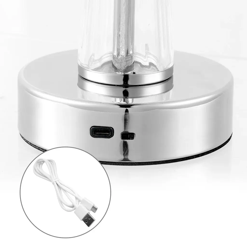 Madelyn 11.5" Bohemian Acrylic Rechargeable Integrated Table Lamp, Clear/chrome