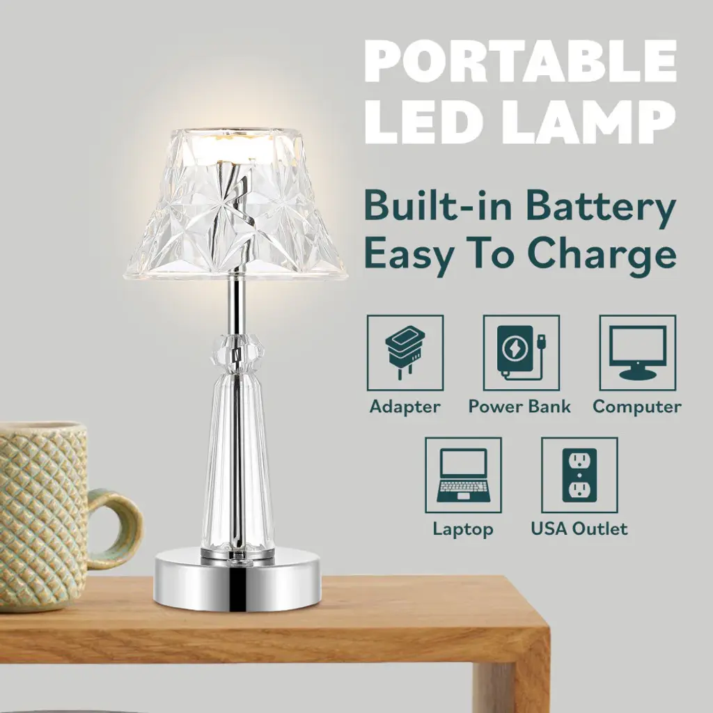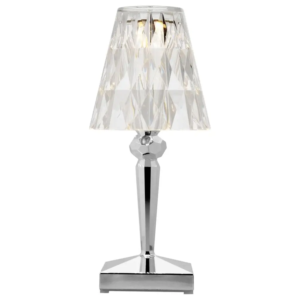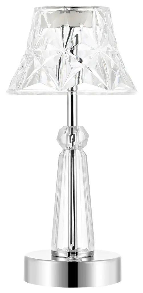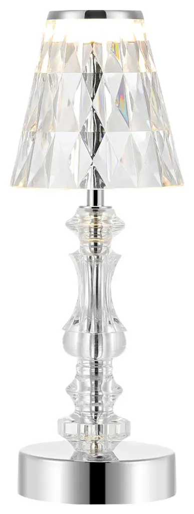 Add a touch of modern glam to a bar, console, or bath vanity with our sparkling faux crystal accent lamp. Made from durable clear acrylic, this cordless, rechargeable mini lamp features a bright LED bulb and a faceted clear shade. Use one to add sparkle to your dining room, console, living room, or bedroom.Features:• This cordless lamp adds a modern glam touch, and is made from clear acrylic crystal• Cordless, portable lamp has a rechargeable battery for convenient accent lighting on a table, console, or vanity• Sparkling acrylic lamp and shade is both elegant and safe - it uses a cool LED bulb• Integrated 2W LED bulb• Color: Clear/Chrome• Body Material: Acrylic• Includes: One (1) lamp• Assembly RequiredDimensions:• Lamp: 11.5 inches high x 5.5 inches wide x 5.5 inches deepAbout us:You see a lamp.We see a decorative work of art.A perfectly curved shade casts a dramatic shadow on a floor. A silk cord you never want to hide. Compatible with LED lightbulbs: as easy on the environment as they are on the eyes. The JONATHAN Y Lighting collection considers every detail from impeccably sourced materials to designer styling. And our prices are so attractive, we''ve transformed a functional necessity into a fashion accessory.JONATHAN Y Lighting - a fashion revolution in home decor.