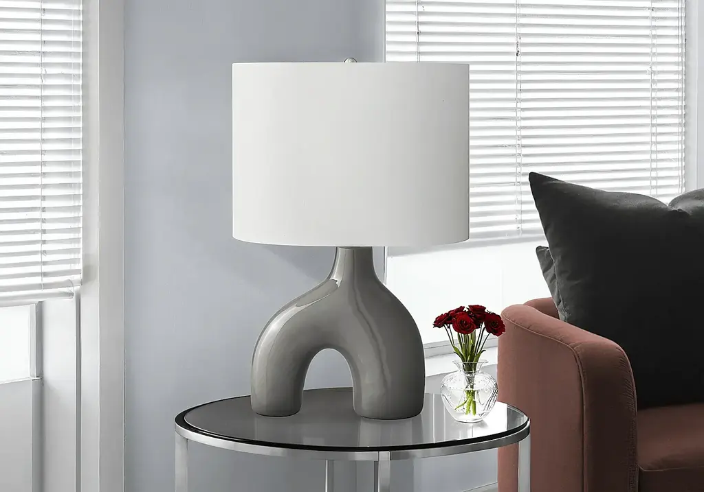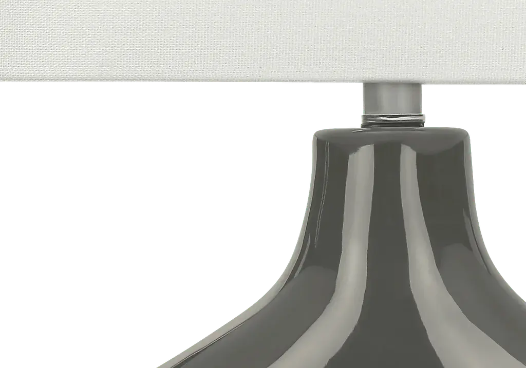Add a fun and decorative element to your home with the stylish, mid-century inspired Madola Island Gray Lamp in dark gray ceramic with an elegant linen ivory shade. This decorative table lamp will brighten up any room with its contemporary and whimsical two-leg shape ceramic base and linen-blend fabric shade. A perfect size to place on an end or side table in your living room or office, or as a bedside lamp on your nightstand in your bedroom, this lamp will illuminate any space with a soft and inviting ambiance. Partial assembly may be required.