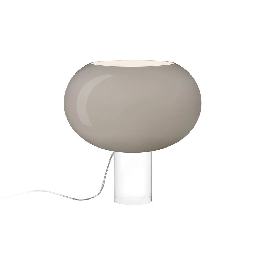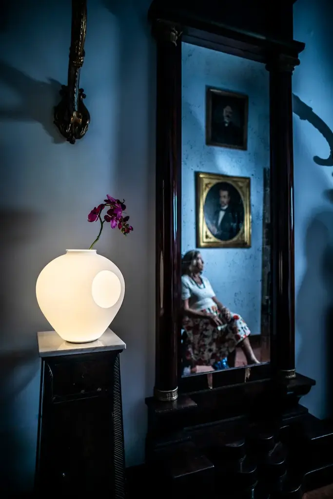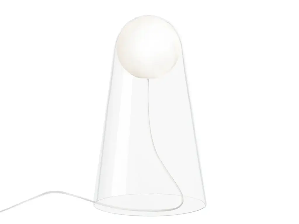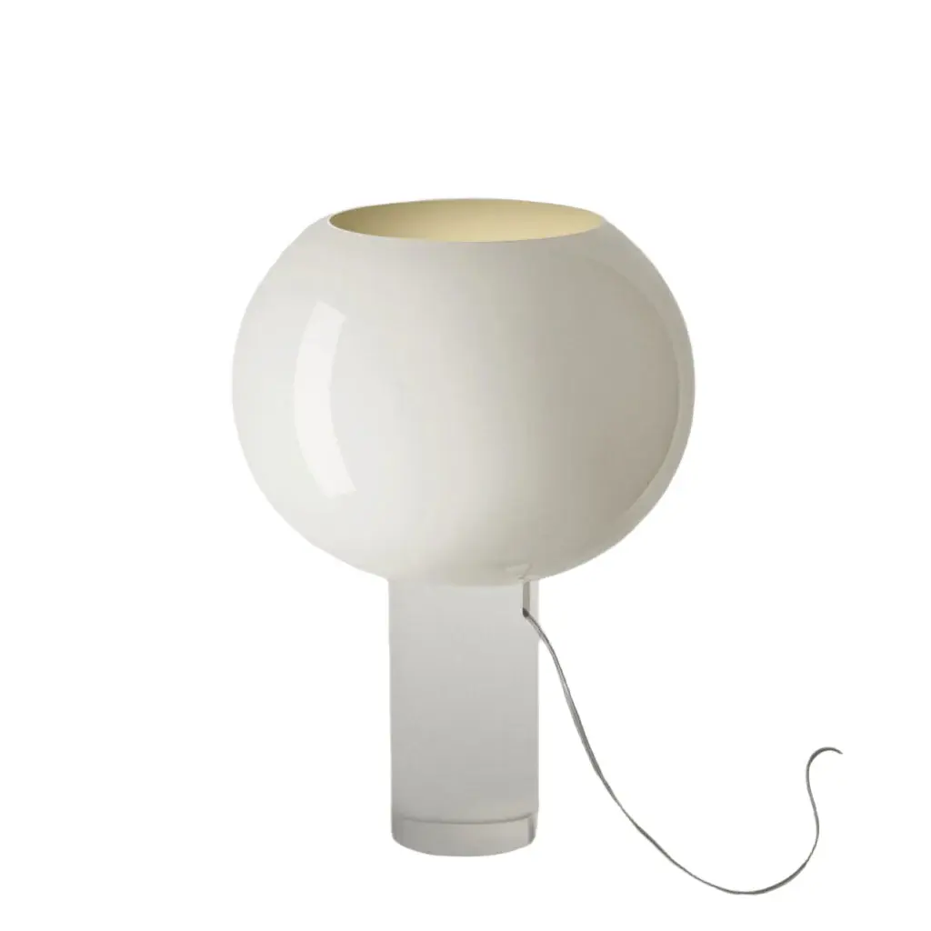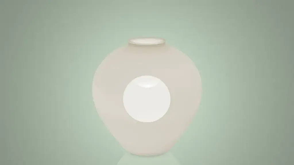 Madre is a table lamp made of varnished aluminium and polycarbonate, borosilicate glass, blown satin glass.LIGHT SOURCE220 / 240 VLED included Mid Power 16W2700 K 1330 lm CRI>80Dimmer includedIP 20Energy efficiency FIn the upper hollow dry branches or leaves can be placed, do not use liquids.The form alludes to the wide hips of fertility goddesses. The ample luminous body contains a vase in frosted borosilicate glass in which to insert branches to create elegant compositions. The hole at the centre generates a magical vision and unique light.