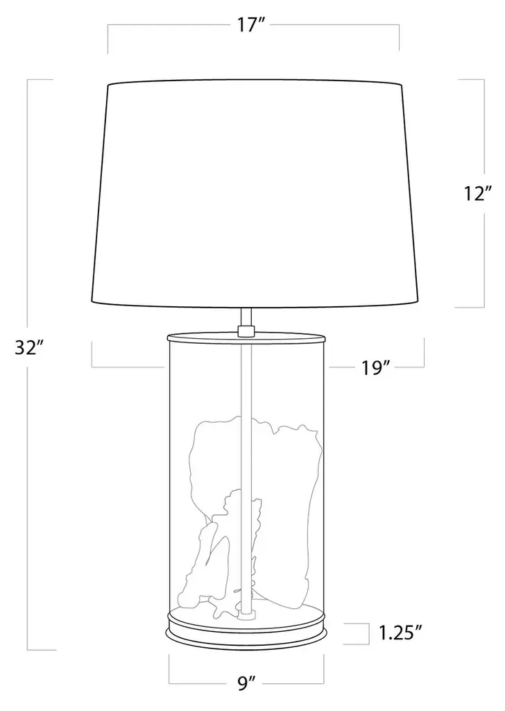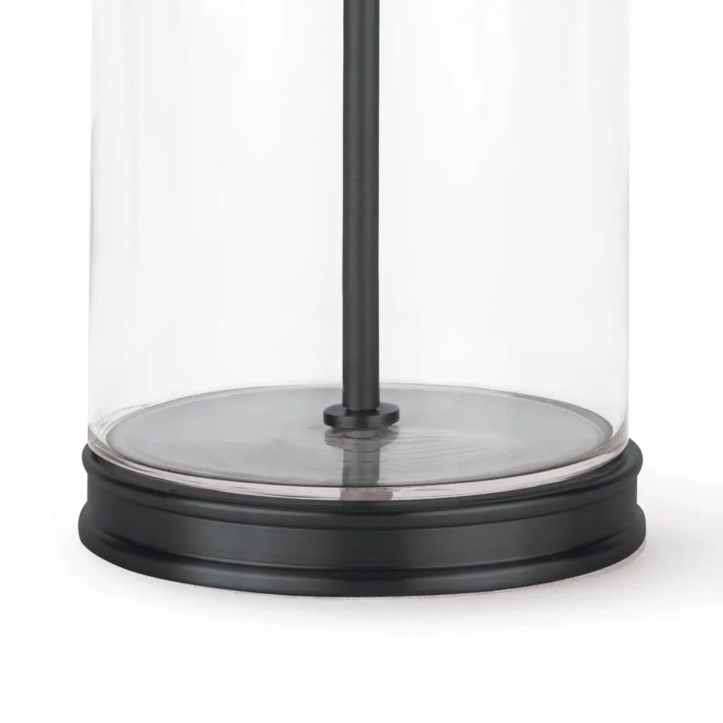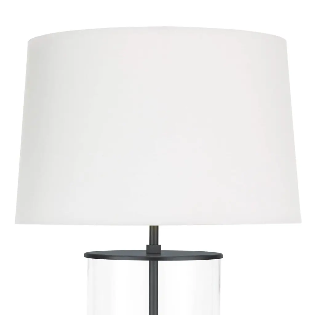 With its clear glass body and bronze-finish detailing, this table lamp is a welcome addition to traditional and contemporary rooms alike. You can easily personalize the lamp by filling the lifting the lid of the body and filling it with seashells, marbles, or any other objects. The linen shade adds classic refinement.