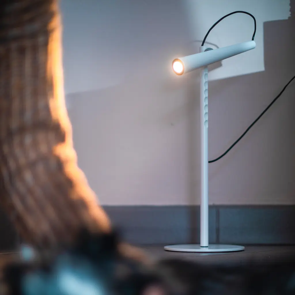 Magneto does the task-lamp basics but sneaks in a party trick: a hidden magnet that lets the LED head slide, pivot, and lock anywhere along its perforated steel stem. The movement feels purposeful—one smooth push shifts the beam from sketchpad to keyboard—and the 5 W, 2700 K module keeps glare low and color warm. Giulio Iacchetti designed the lamp for Foscarini with two intentions: keep the form pared back (just powder-coated steel and ABS) and make every adjustment satisfying. An inline dimmer on the cord lets you dial brightness without fumbling for switches, and the broad base stays put even when the head is angled forward. Choose black or white; keep it on the desk or opt for the taller floor version when you need reach over a reading chair. Either way, Magneto stays focused, literally and figuratively, on the work in front of you.