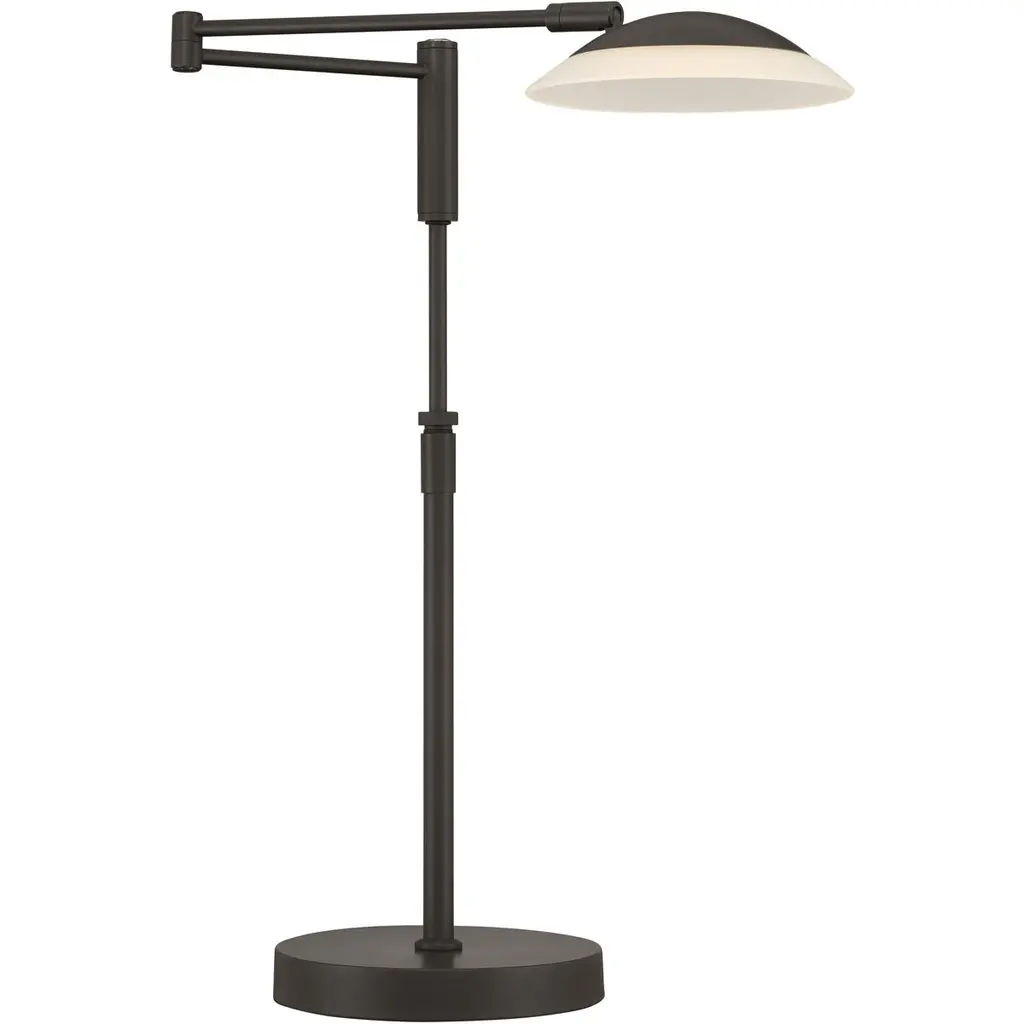 Superb for complementing a nightstand or a desk, this table lamp is a clever synthesis of rigor and opulence. A luminous and precious footed base in white marble only interrupts the darkness of the general burnished brass-finished structure. Customized light configurations are guaranteed by the angular body thanks to its jointed structure, which culminates with a cylindrical element housing a pair of LED lights (4.8 W - 3000K).