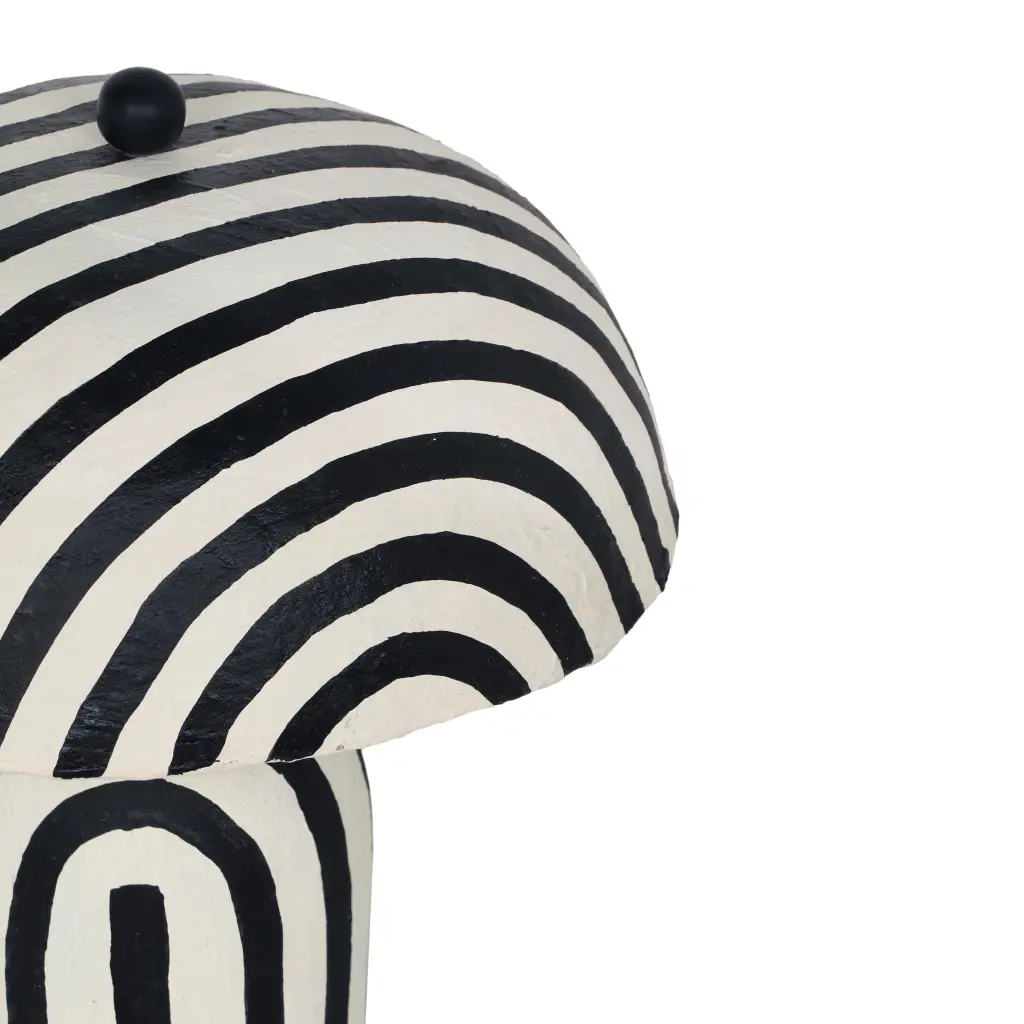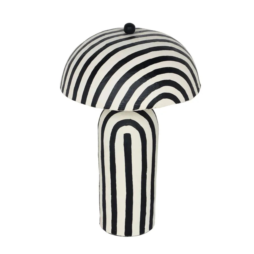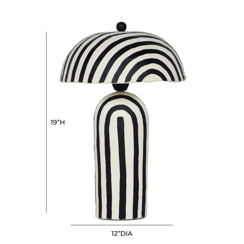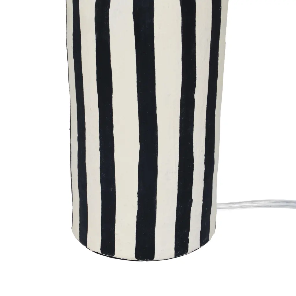 Illuminate your space with the charming Maiori Striped Papier Mache Table Lamp, featuring a beautiful bold silhouette crafted from innovative paper mache construction. The lamp's punchy stripes add a playful touch, complemented by a domed lampshade and an adorable orb finial. Available in several color options, this lamp effortlessly adds striking personality to any space, making it a delightful and stylish accent for your home.
