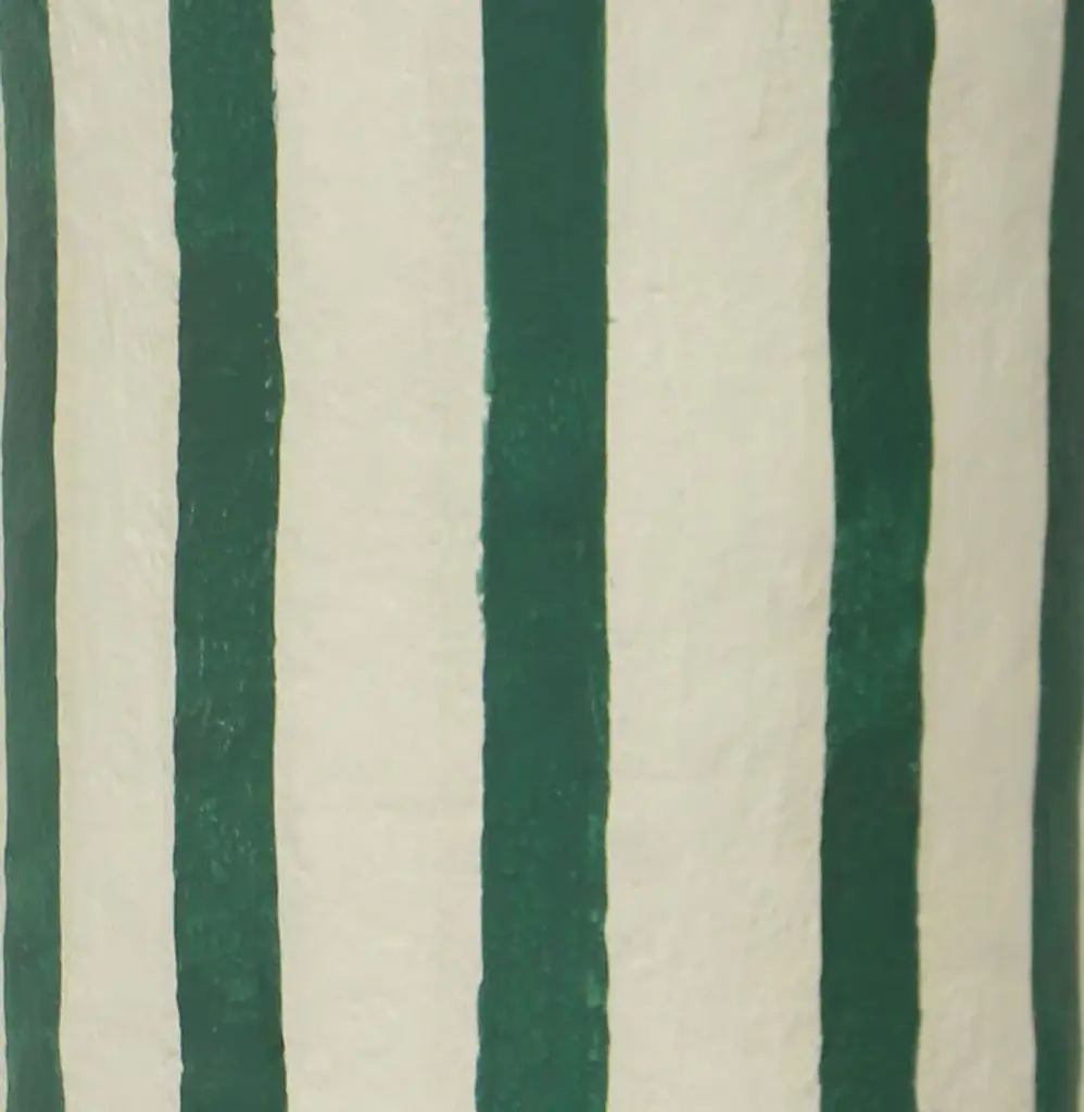 Illuminate your space with the charming Maiori Striped Papier Mache Table Lamp, featuring a beautiful bold silhouette crafted from innovative paper mache construction. The lamp's punchy stripes add a playful touch, complemented by a domed lampshade and an adorable orb finial. Available in several color options, this lamp effortlessly adds striking personality to any space, making it a delightful and stylish accent for your home.