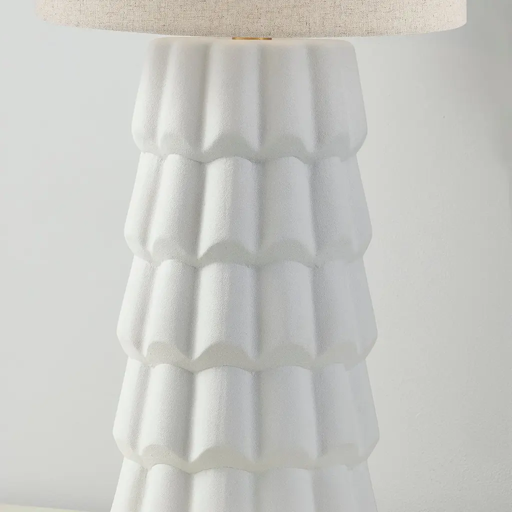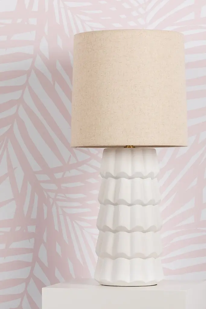 Fashionable and feminine, Maisie’s textured white ceramic ruffles give an organic coastal touch to this wave-inspired design. Create a beautiful yet functional dresser vignette with the table lamp, or add feminine flair to your bathroom vanity with pendants. Want in on a little secret? The pendant doubles as a semi-flush mount! Just remove the stem, and voila! A quick and easy refresh is just a twist away. Part of our Megan Molten x Mitzi Tastemakers collection.