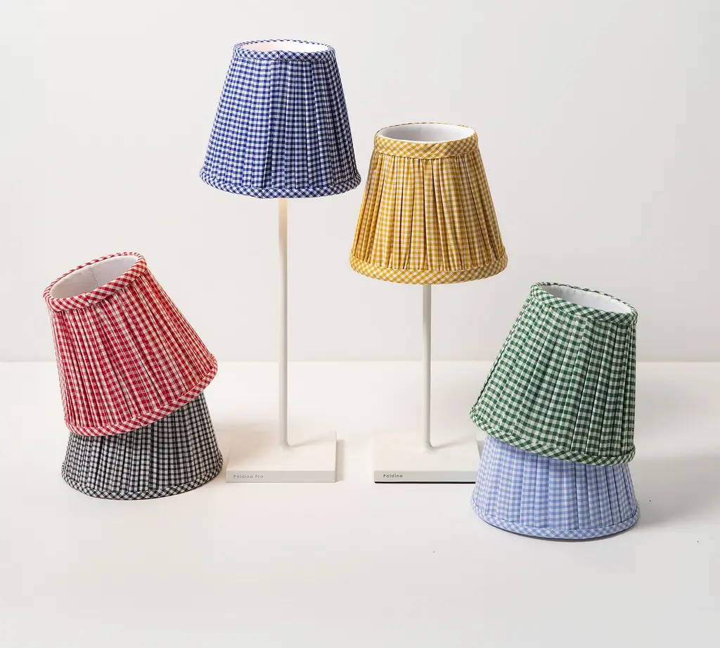 Designed by Maison Maison, known for its singular edit of authentic French antiques and home accessories, these gingham shades evoke cozy cottage living and picnics in the countryside. Printed on crisp cotton, these small, gathered shades have a bright, farmhouse feel. Choose your checkered hue or get a couple to give your rechargeable, portable lamps a periodic refresh.