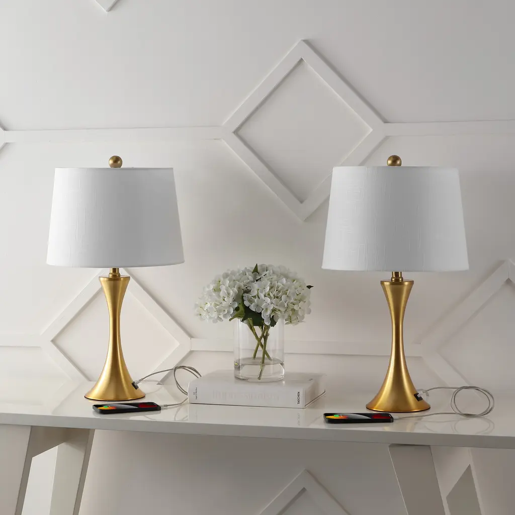 Makena 22.75" Modern Glam Iron Hourglass Led Table Lamp With Usb Charging Port, (Set Of 2) By Jonathan Y - Brass Gold
