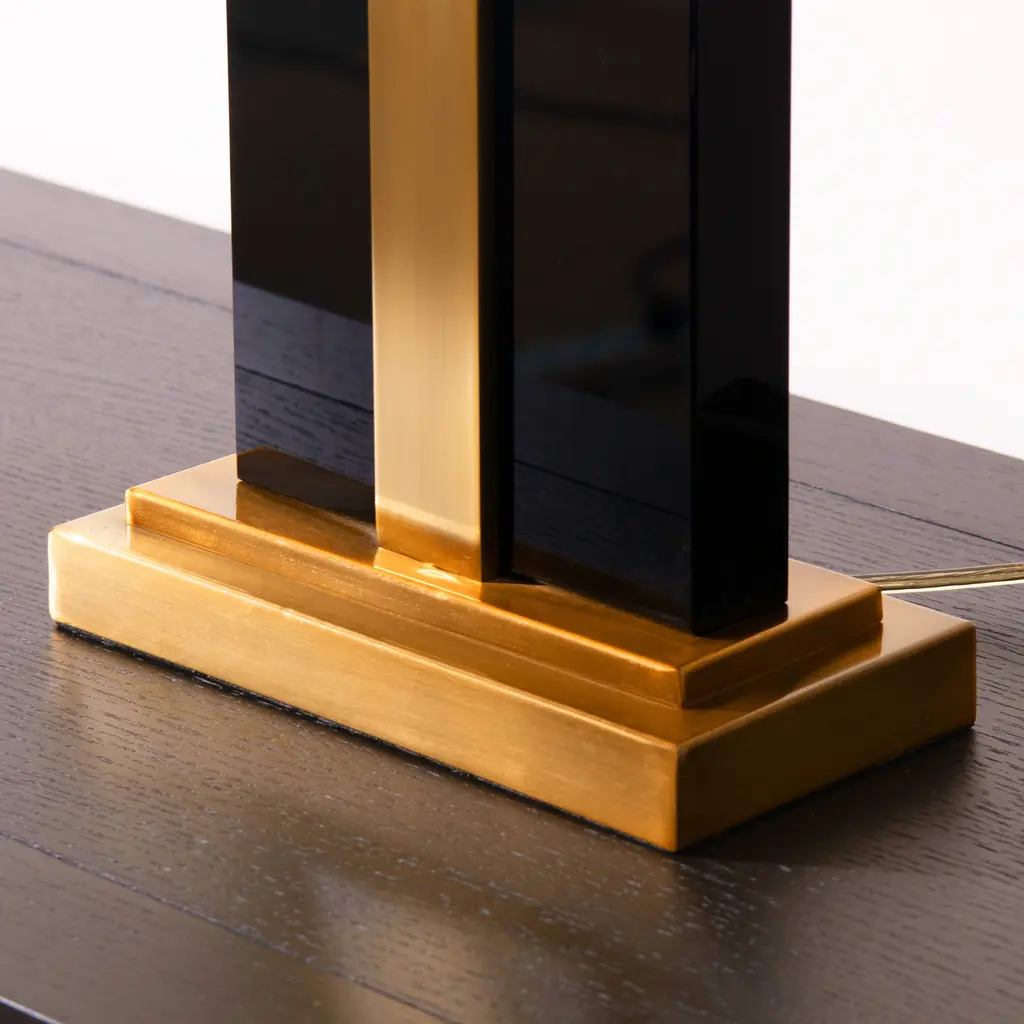 The open metal brass-tone frame adds elegant style to the look of the Malana table lamp. It features a black rectangle shade, brass and black metal finish, white marble base and a 3-way switch. It is built with sheer perfection and adds a dazzling glow to your spaces.