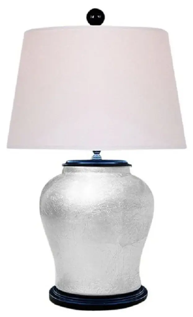 The hand-glazed finish and artful blue brushstrokes of the ceramic base elevate this table lamp far beyond functional. The clear acrylic base and finial and the white linen shade accentuate the base's luster.