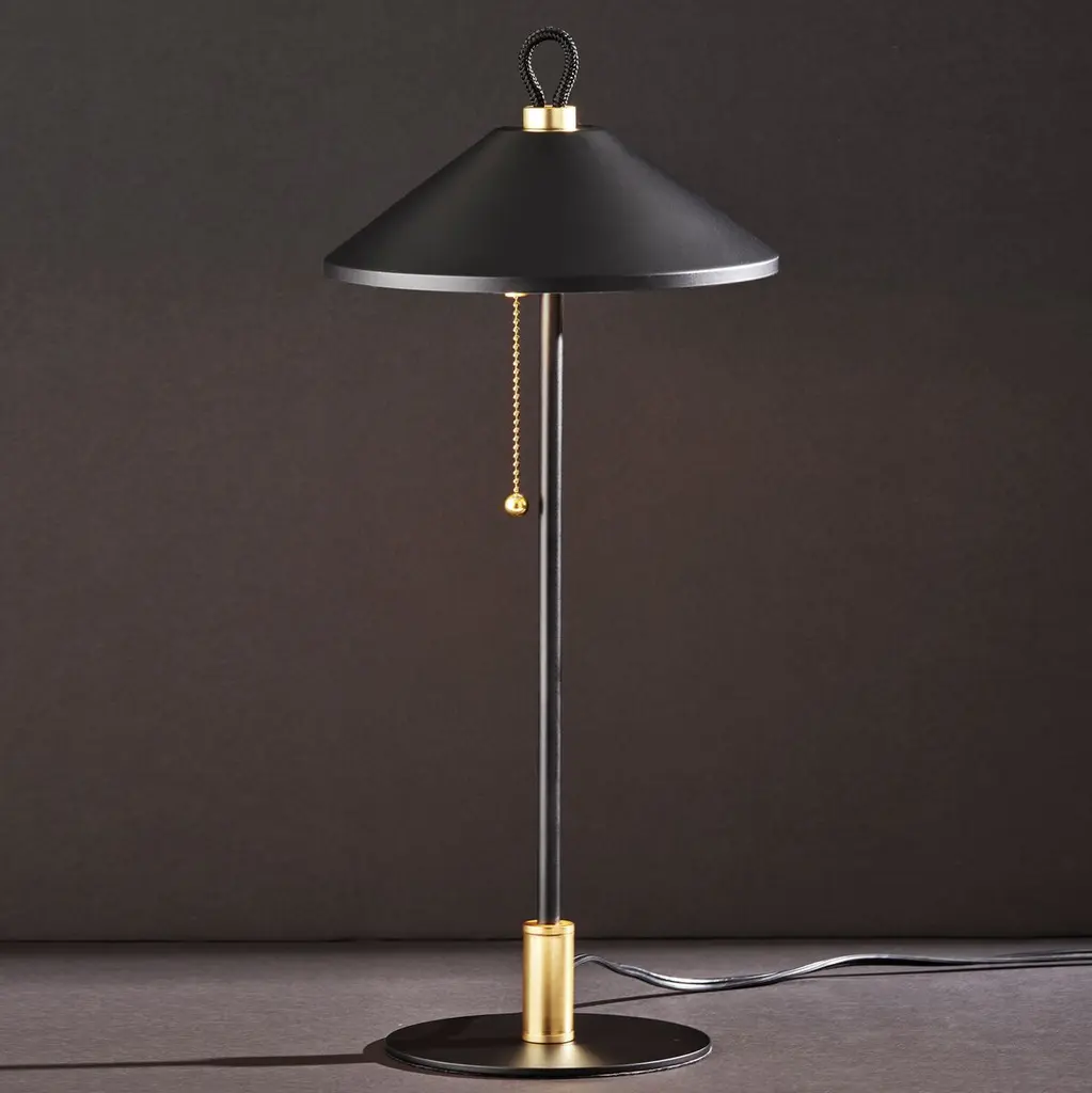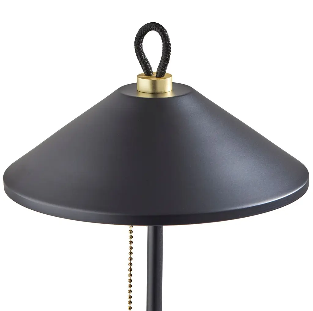 In classic form, this table lamp's mixed metal finish and elegant design add a polished accent to your space. Featuring a slim round base, thin pole, and tapered conical shade, the dual-metal design is crafted with attention to detail. One variant boasts a brass finish with beautifully contrasting black metal accents, while the other option features black metal with stunning brass accents. Both lamps come with two 5W replaceable LED bulbs that illuminate your room with 450 lumens of warm light. A pull-chain switch in brass finish easily controls the light, while the lamp is powered by a black fabric-covered cord. Complete your décor with the coordinating floor lamp for a cohesive look.