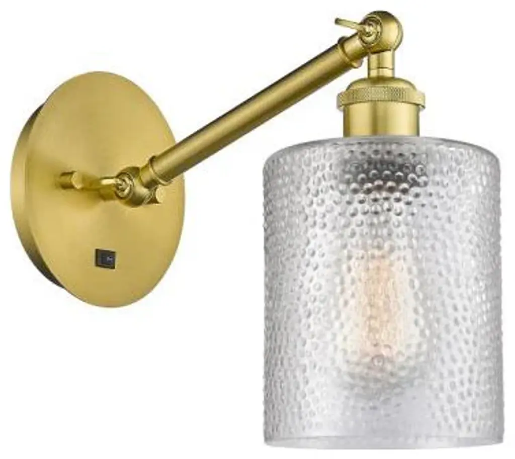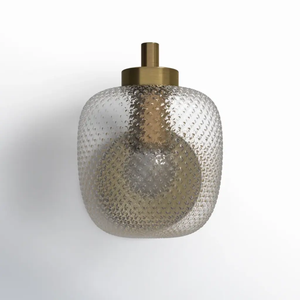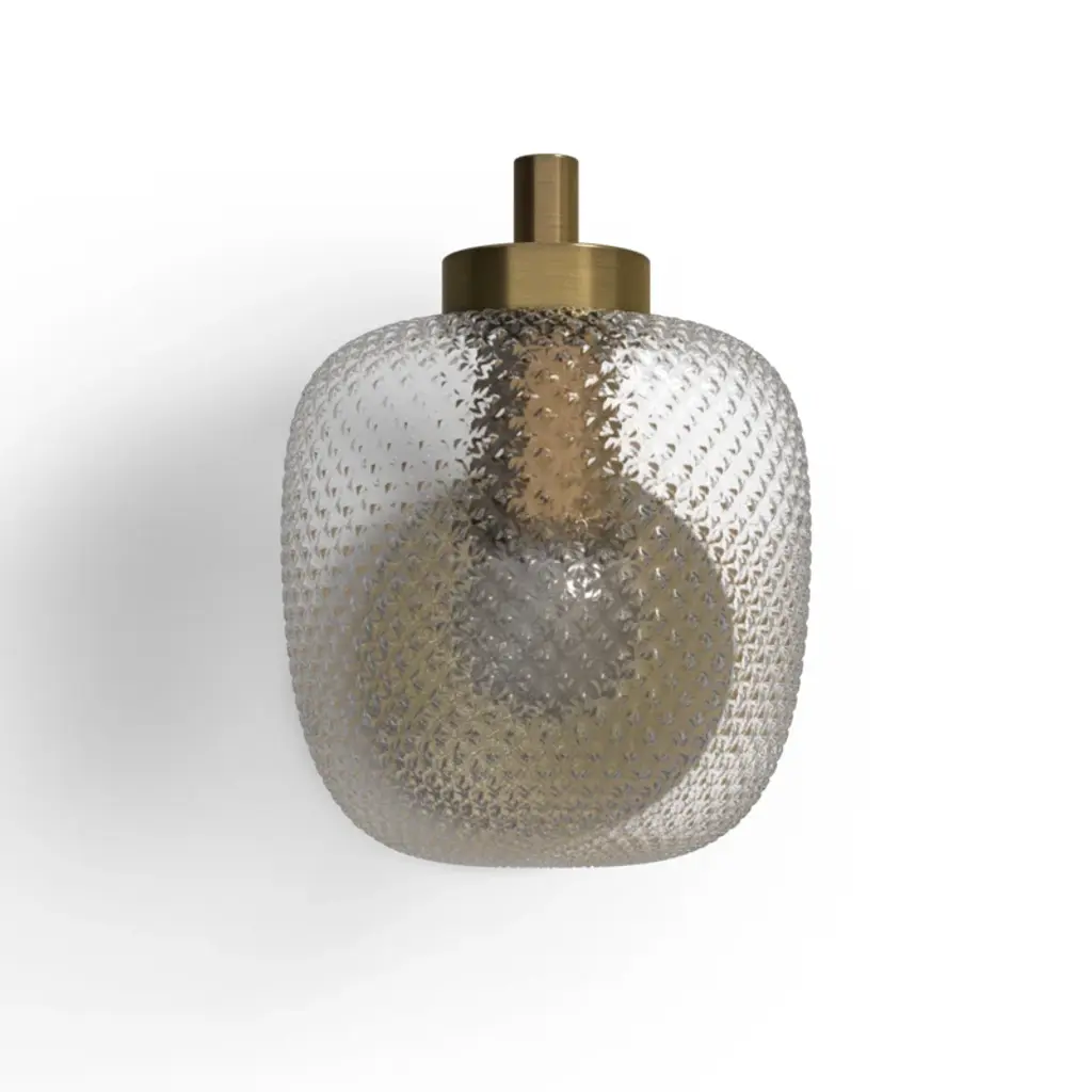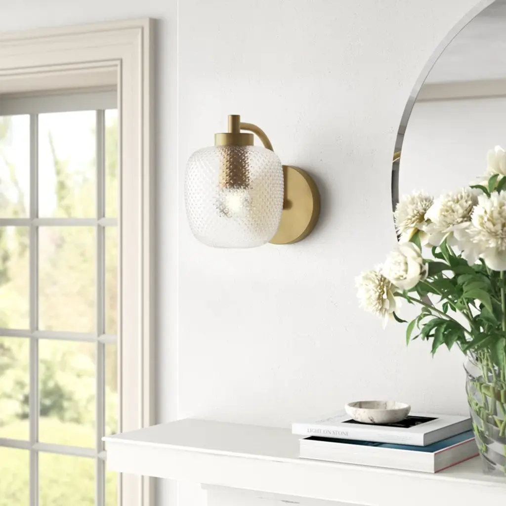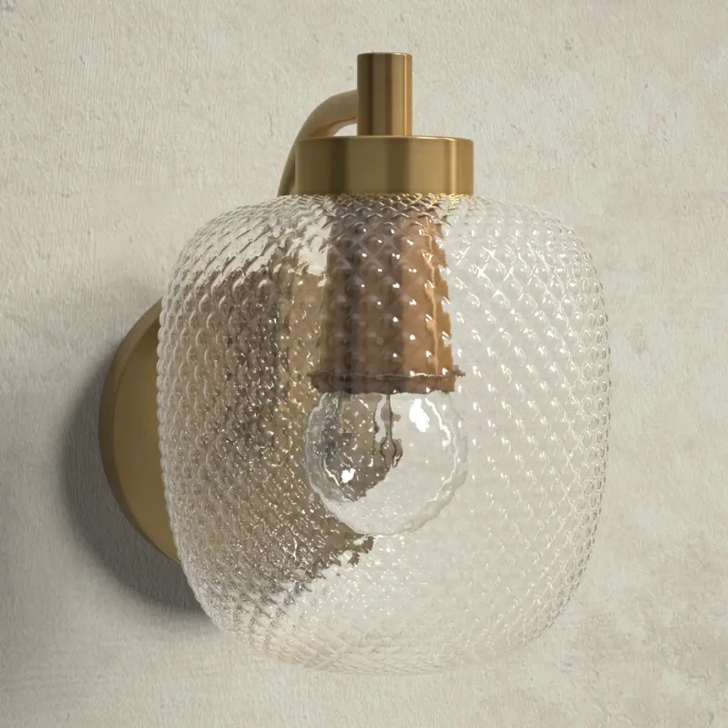 With a skillful blend of metal and textured glass, the Maldives wall lamp elevates any space with contemporary style. For symmetrical design, pair two of these sconces on either side of beds, fireplaces, or mirrors or place individually in entryways or other spaces for a pop of light. The round wall mount in antique brass finish supports a matching, gracefully arching stem. The shade is crafted of clear textured glass that brings warmth to your room by softly diffusing the light from a 60W bulb. Complete your décor with the coordinating Maldives floor lamp, table lamp, and pendant light.