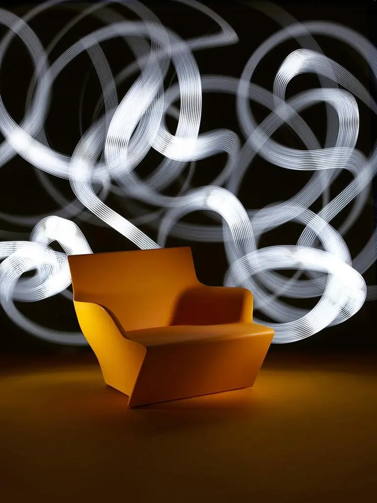 Malva Green Kami San Armchair by Marc SadlerDimensions: D 75 x W 95 x H 70 cm. Seat Height: 35 cm.Materials: Polyethylene.Weight: 20 kg.Available in different color options. This product is suitable for indoor and outdoor use. Also available in a lighted and a lacquered version, with glossy or matte finishes. An additional cushion made of rubber filling with an outdoor waterproof acrylic cover (removable) is available. Prices may vary. Please contact us. Polyethylene folds like paper of the ancient Japanese art of the Origami and this particular elegance characterized the whole Kami collection, designed by Marc Sadler. Kami San is an armchair with a soft and comfortable shape. Kami San is a perfect synthesis between aesthetic and comfort, and it completes outdoor and indoor settings with elegance, also in its luminous version. As the whole Kami collection, Kami San is an armchair ideal to indoor and outdoor areas of contract and private homes.Our stories happen in places precious to us. SLIDE was born from the desire to produce furniture and light to create the perfect atmosphere that highlights emotions.Design is inspiration, surprise, joy. It's the amazement of seeing something unique for the first time. It's creating spaces to feel good and live surrounded by beauty. It means giving a personal imprint to indoor and outdoor spaces. It means choosing your ideal element that is the perfect setting for emotions and experiences, which become indelible memories. The founder Giò Colonna Romano knows this well, combining his fervent imagination with thirty years of know-how in the processing of plastic resins, giving birth to SLIDE in 2002. The first note of amazement is the luminous furniture, which immediately became a must have in the world of events. Since 2015, his son Marco Colonna Romano has taken over the reins of the company, with the same desire to grow and innovate as his father. Thanks to a new panache and the team of young people it surrounds itself with, SLIDE becomes a beloved company for outdoor furniture: new shapes, materials and tactile textures have won the hearts and ideas of architects and interior designers around the world. SLIDE has thus created complete collections and furnishings, with new shapes, whose lines arise from collaboration with internationally renowned designers of the caliber of Alessandro Mendini, Paola Navone, Stefano Giovannoni, Fabio Novembre, Marcel Wanders, Karim Rashid, Marc Sadler, Francesco Favaretto and Marcantonio.New materials were chosen and inserted, initially soft and rigid polyurethane, and then comfortable cushions, waterproof fabrics, tactile textures ideal for completing the polyethylene furnishings with taste and class. But SLIDE does not forget its first essence, lighting: in recent years it has developed a line of much more technical lamps for large areas, essential in shape but with great visual impact. For the first time, Slide has managed to give an artisanal twist to an industrial process: to meet the increasingly high demands of living, the production creates non-replicable shades, in which every small imperfection enhances the industrial process and makes each piece unique . Because Slide's strength has always been the careful reading of the market, the creation of something that didn't exist and which then became necessary: here Slide continues its production in Buccinasco, on the outskirts of Milan, but its name and its products reach more than 130 countries around the world.