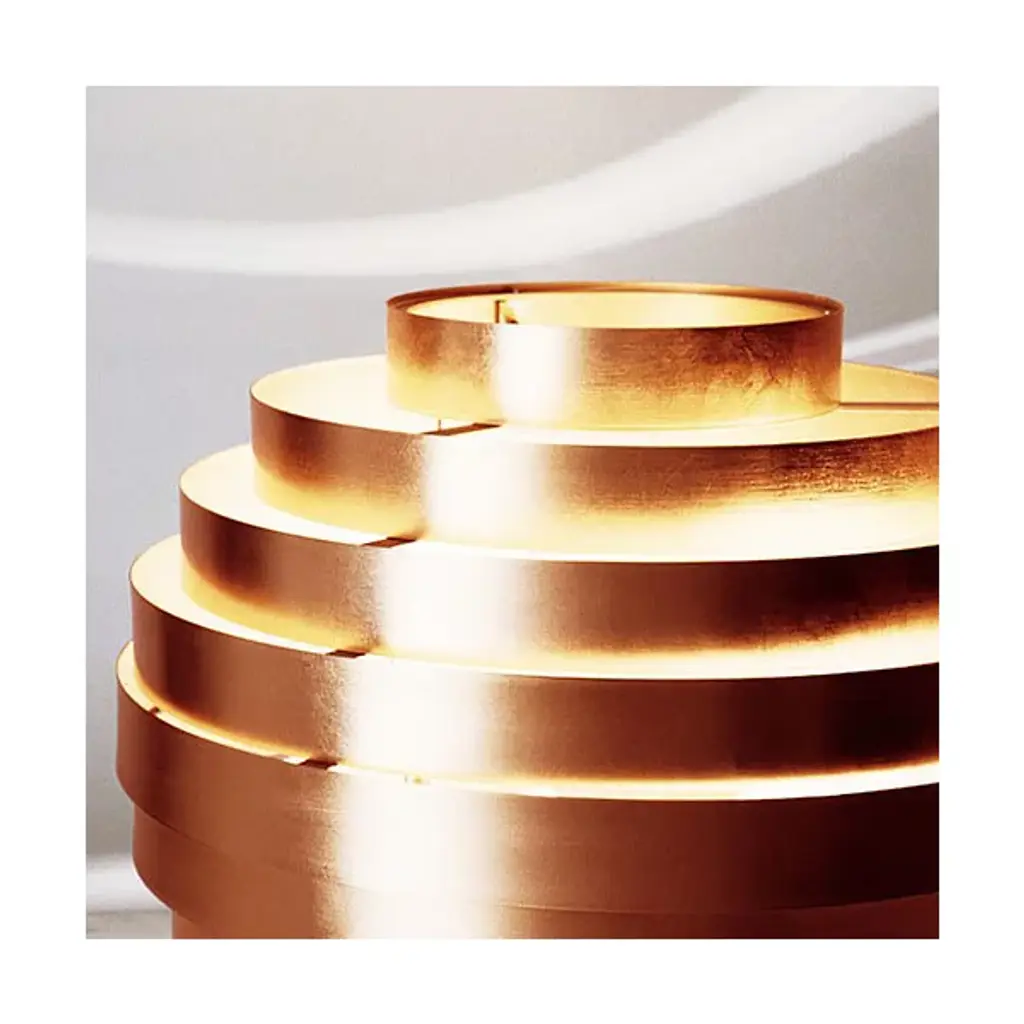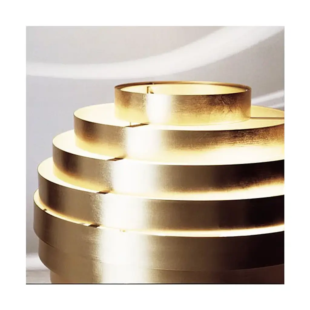 Add luminous life to your table space with the Nordic-inspired Mamamia Table Lamp by ANTONANGELI. It was designed by Theo e Silvia Sogni using 9-metal rings at differing diameter sizes to create its honey-comb silhouette. The head houses a Halogen bulb and emits an exceptional lighting effect once illuminated. Appropriate for residential and commercial spaces.