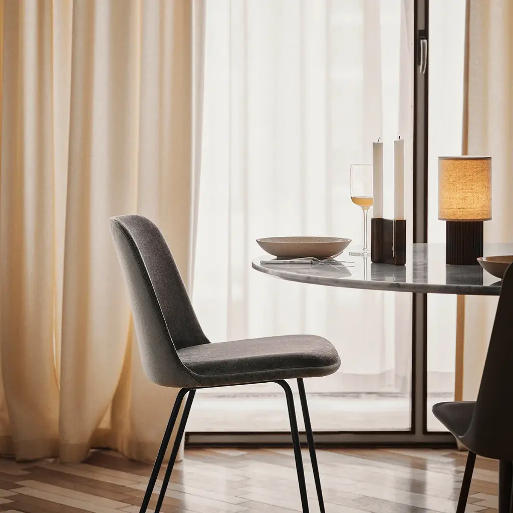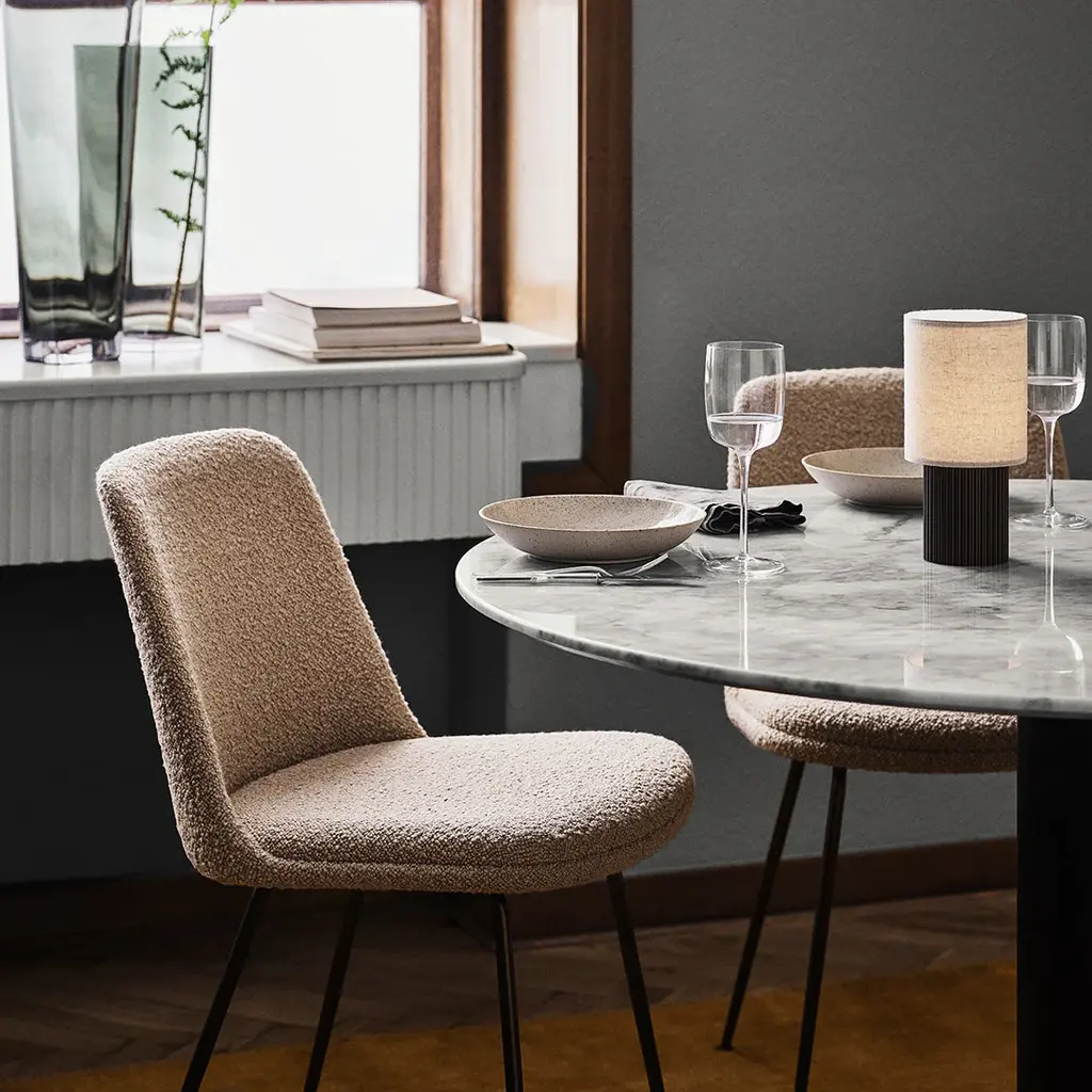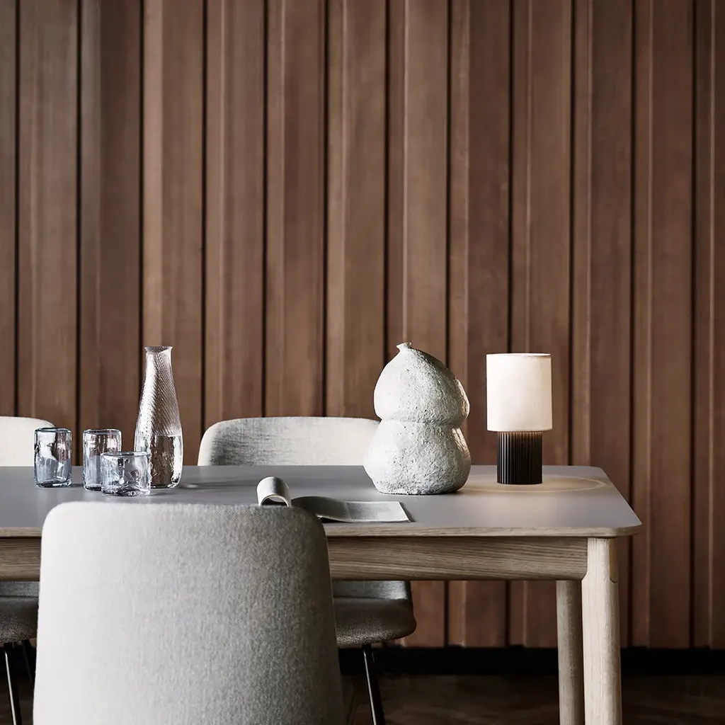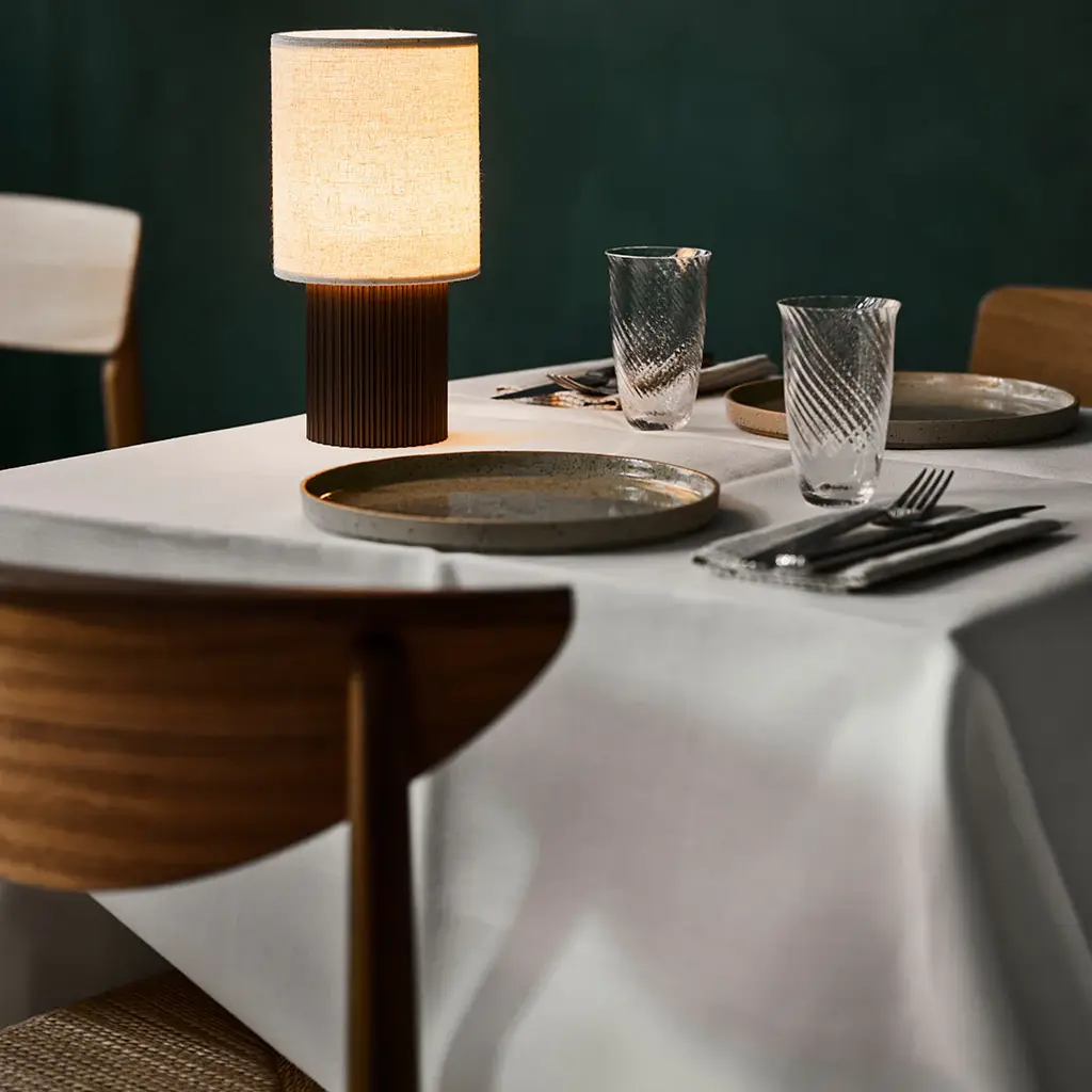 Ensure the ambiance is right with Manhattan SC52, a portable table lamp from Space Copenhagen. Its industrial-inspired base is made from anodized aluminium with a columned detailing; a cream-coloured canvas shade sits atop. This battery-powered lamp can operate for nine hours at the highest setting, with an extra battery option that allows additional operating. It is easily recharged with a magnetic USB cable or a charging tray.