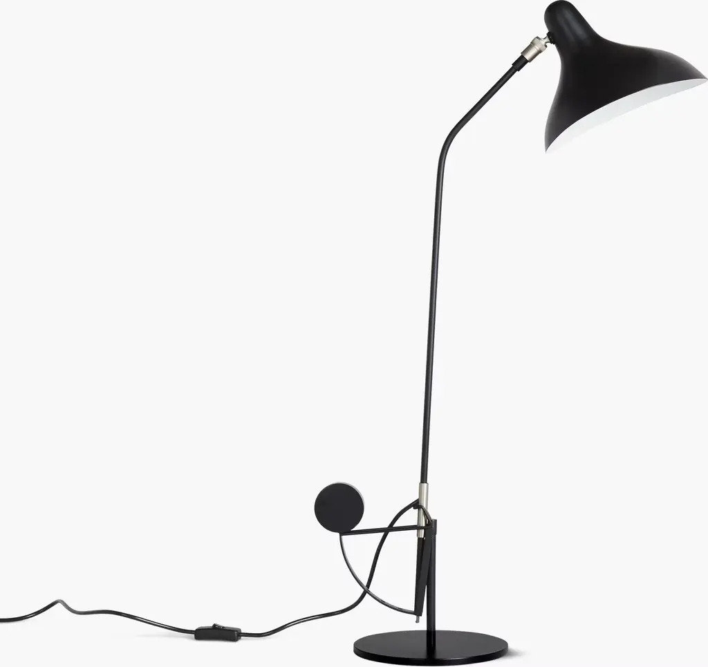 Born in Mainz, Germany, in 1924, Bernard Schottlander fled to England as a Jewish refugee in 1939. He worked as a welder for a short stint during the war before delving into sculpture at Leeds College of Art and the Anglo-French art center in St. John's Wood. A year later, he went on to open his own design studio and began creating new pieces in limited editions. An admirer of Alexander Calder, the American sculptor perhaps best known as originator of the mobile, Schottlander created his Mantis Collection (1951) as an homage. Movement being intrinsic to his work, he devised clever adjustable frames constructed of strong yet flexible steel rods combined with counterweights. He then fabricated shades from aluminum using repousse and chasing techniques, relying on his trained sculptor's eye to produce beautifully flowing shapes that set the symmetrical and asymmetrical in opposition. His lamps - much like his idol's mobiles - appear to defy gravity with their floating forms. Bulb (not included): LED, CFL or incandescent; E12 base; 40W max. This is the authentic Mantis Collection. Made in China.