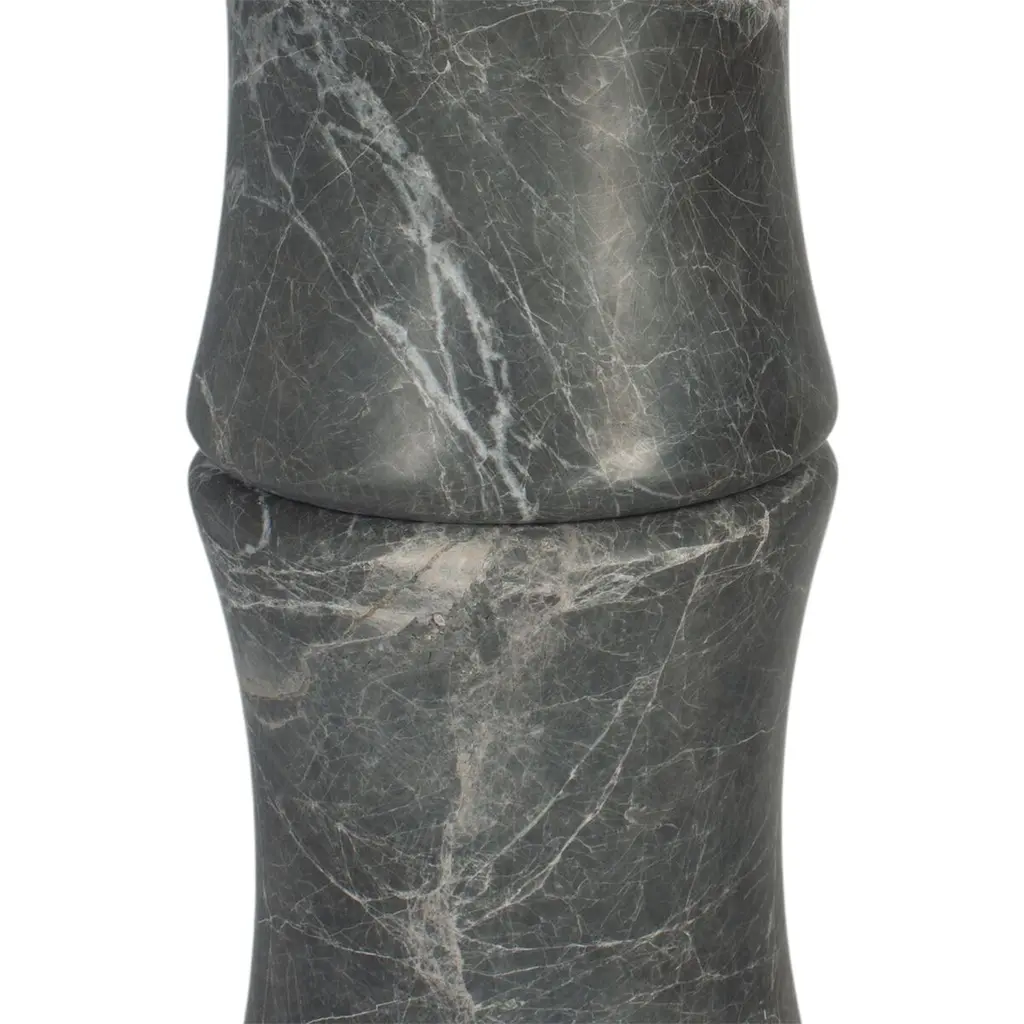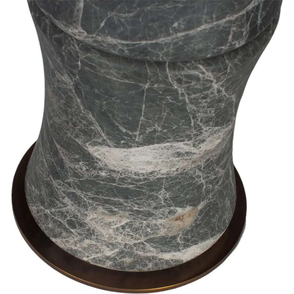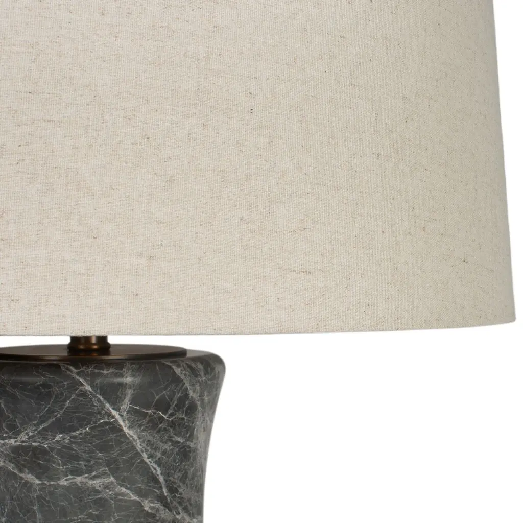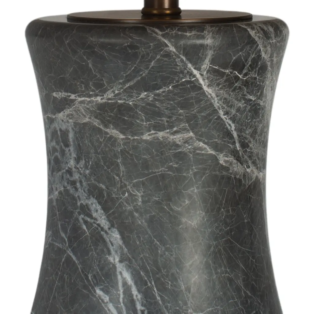 Bamboo-inspired segmenting creates a fresh, organic ambiance for this transitional marble table lamp. Its lovely coloration adds depth to the cool marble stone column, which adds gentle curves for an intriguing silhouette. On top, a cotton blend drum shade delivers soft but true illumination that's beautiful for both tasks and inviting ambiance.