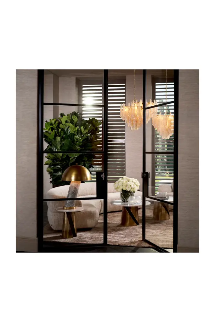 This sophisticated piece features a marble base and a shade with an antique brass finish, epitomizing modern artisan craftsmanship. Perfect for contemporary interiors, this iconic lamp offers timeless elegance and functionality. Discover the exquisite blend of marble and brass in this signature lighting solution for your luxury home.