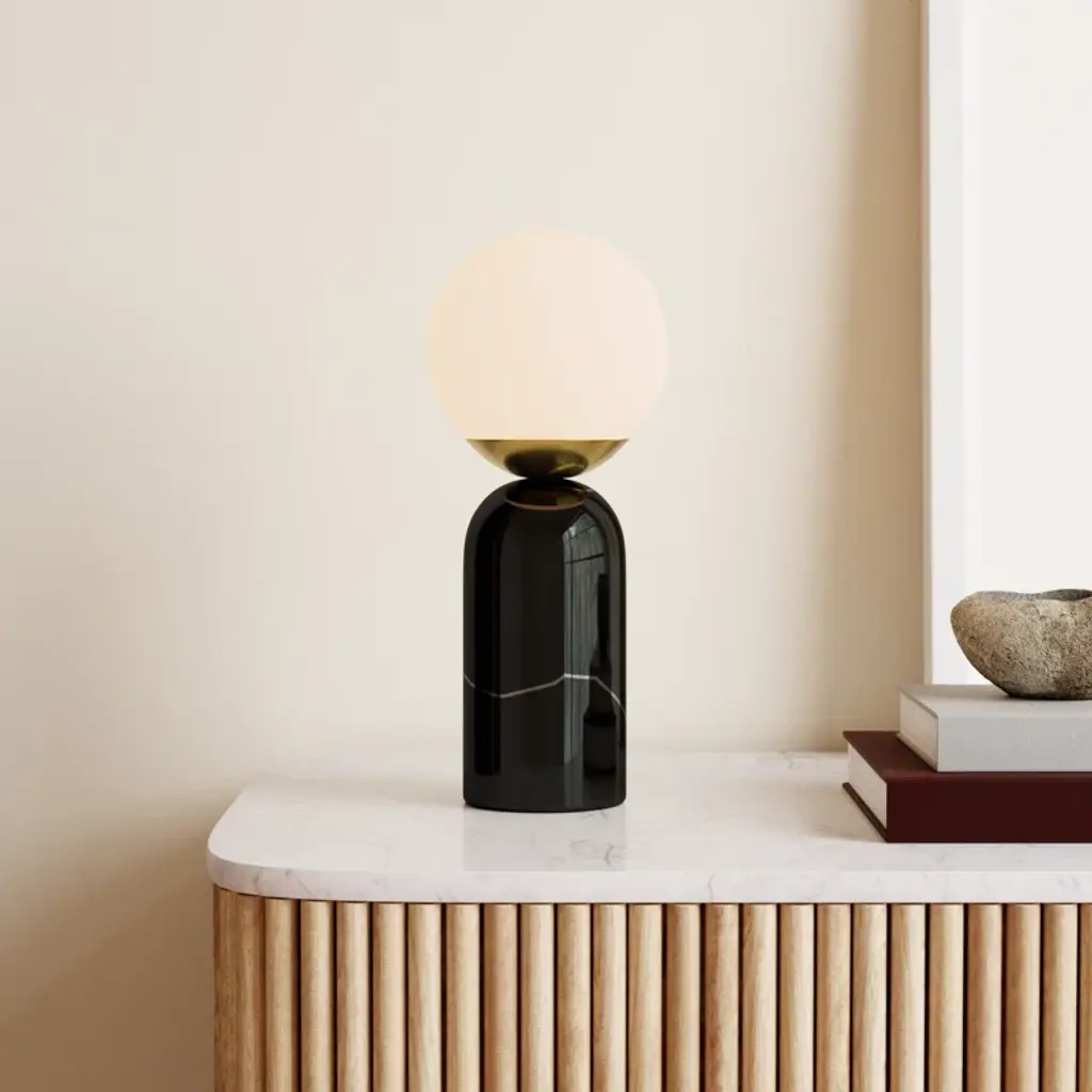A unique and eye-catching piece for any room. Its body is made of luxe marble which adds a classic touch to any space. The glass lampshade provides an extra layer of sophistication and elegance, while the subtle base keeps it firmly in place. Perfect for modern or traditional décor, this lamp will be sure to impress your guests and add style to your home. With just a few simple care instructions like avoiding harsh cleaners, you can enjoy this beautiful piece of lighting for years to come.