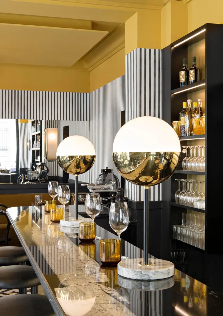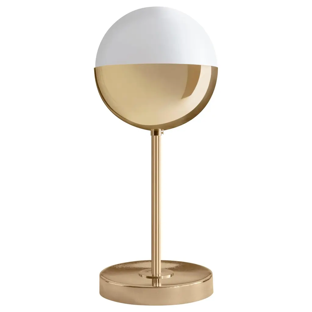 Marble table lamp 01 by Magic Circus EditionsDimensions: H 50 x W 22 cm diameter spheres: 22 cmMaterials: Marble, Smooth brass, mouth blown glassDimmable version available. Available Finishes: Brass, nickelAvailable colors (central tube): Black, green pine, red wine, mustard yellow, and papyrusAll our lamps can be wired according to each country. If sold to the USA it will be wired for the USA for instance.Rethinking, reimagining, redesigning familiar objects that we look at every day without ever really seeing them and using light to tell stories, this how Marie-Lise Féry sees her work. Offering a new take on our urban heritage, changing our perspective through her work on scale and usage. Since 2015, Magic Circus Éditions has been setting the world of lighting ablaze, creating airy, playful and magical designs that merge retro with sleek and contemporary. A free-spirited antiquarian, founder Marie-Lise Féry draws inspiration from the world of cabarets and the magic of the circus to give shape to imaginative, fun and playful collections. The air of magic she breathes into her work reveals a wealth of interpretations and widens possibilities for creative interiors. The combination of traditional know-how — outstanding craftsmanship — and her imaginative take on historical, everyday objects lends an unexpected and charming quality to her creations.Féry’s lights are designed just like magic lanterns — precursor to modern-day cinema —, inspiring wonder through oversized, seemingly weightless compositions and understated references. Each collection has its own inspiration: the first models of street lighting for Collection 01; the happy memories of funfairs, sweets and balloons for her latest collection Balloon; the Far East for Collection 02; and the colourful, carefree spirit of the 1970s for Pop-Up, released in 2019. Magic Circus Éditions draws on airy designs, dream-like inspirations, colours and fun to create a sense of enchantment.Magic Circus Éditions founder Marie-Lise Féry was born in Paris. After studyingart business, she moved to New York to start her career. Fascinated by the city’s architecture, she found an endless source of inspiration in the Big Apple’s monumental decors. Returning to France to settle down in Lyon, she opened an antiques gallery named Un Château en Espagne, and started telling her own stories through objects she gleaned on markets all around the country. A way for her to perpetuate her mother’s motto: “Objects with a soul will always belong”. Since 2015, the year she established Magic Circus Éditions, she has moved on to lighting as a new medium for telling her stories, bringing the magic of the show into home interiors. With her love for the circus, turn-of-the-century cabarets and music halls, Marie-Lise Féry’s love of unusual objects has remained strong, but now prefers to focus her attention on pieces she has imagined herself. With a fun and light-spirited approach, she creates a bold visual effect that elicits instant attraction. She collaborates with some of Europe’s greatest artisans, from Prague and Murano to Clermont-Ferrand, working for instance with a Czech company specialising in sculpting glass using a diamond-blade saw, or an auto body shop renowned for their work with lacquers. The refinement of shapes and finishes, bespoke designs and technical excellence all contribute to creating pieces that inspire surprise and wonderment. In the manner of Wes Anderson in Grand Budapest Hotel, blending together elegance, humour and unexpected details, her designs never fail to surprise. Attentive to the effect of her designs both in daylight and at night, Marie-Lise Féry takes us on a journey through space (from outside to inside) and time (from yesterday to today).