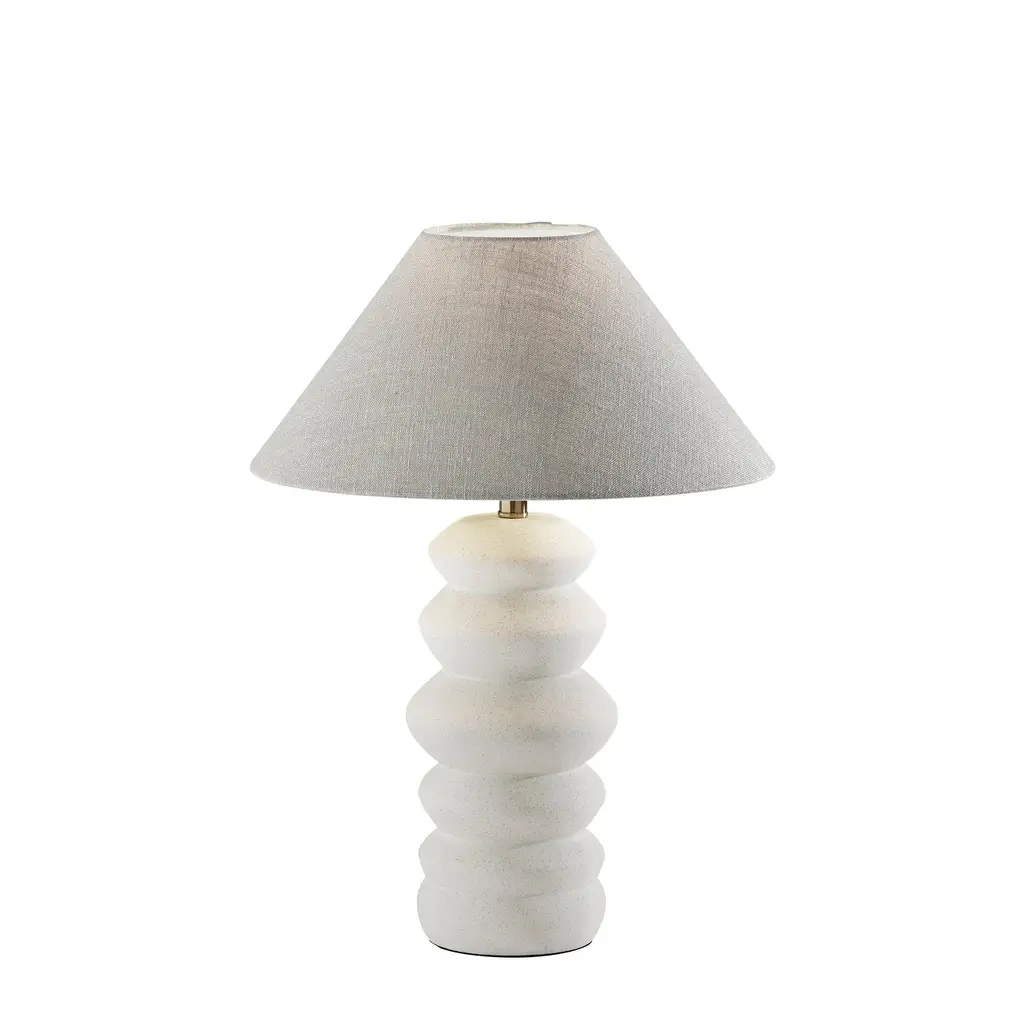 Introducing the 1640-02 Marcey Table Lamp, a modern and elegant lighting solution designed to elevate your home decor. This table lamp features a sleek matte off-white ceramic base, exuding simplicity and sophistication. Complementing the base is a tapered taupe textured fabric shade, creating a harmonious balance of style and texture. Standing at a height of 25 inches, the Marcey Table Lamp adds a touch of contemporary charm to any room. Designed with user convenience in mind, this table lamp is equipped with an on/off rotary socket switch, offering effortless control over the illumination. The Marcey Table Lamp seamlessly combines sleek design with practical functionality, making it an ideal addition to enhance your living space. Modern Elegance: The 1640-02 Marcey Table Lamp boasts a sleek matte off-white ceramic base, creating a modern and refined look for your decor. Versatile Height: Standing at a height of 25 inches, this table lamp is suitable for various settings, from bedside tables to living room accents, providing stylish illumination. Effortless Control: The lamp is designed with an on/off rotary socket switch for convenient and straightforward lighting adjustments. Taupe Textured Shade: The tapered taupe textured fabric shade adds depth and texture to the lamp's design, harmonizing with the ceramic base for a cohesive look. Elegant Practicality: Elevate your living space with the Marcey Table Lamp, where modern elegance meets functional design, creating a welcoming and well-lit atmosphere.