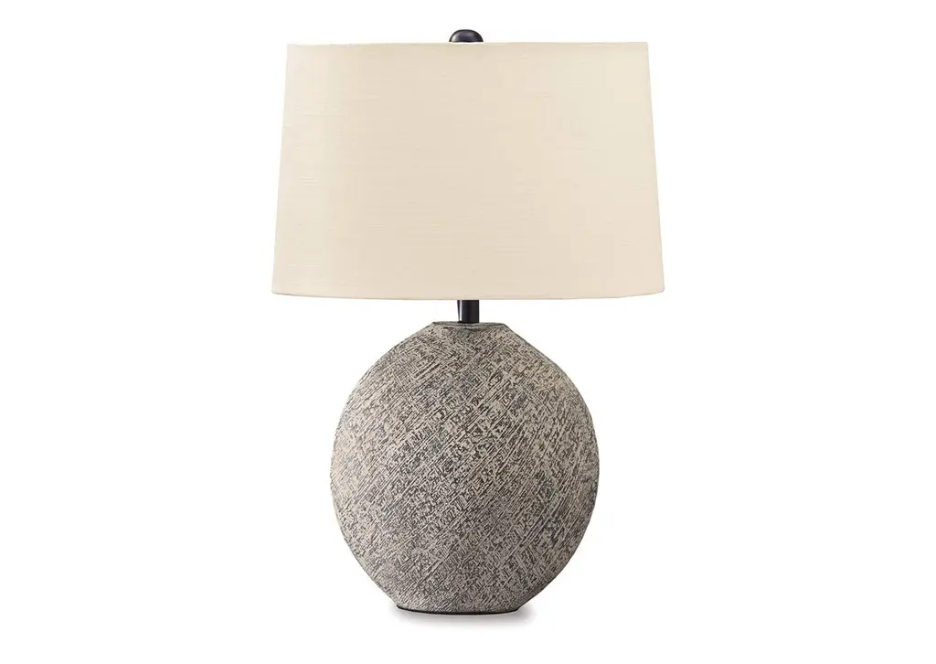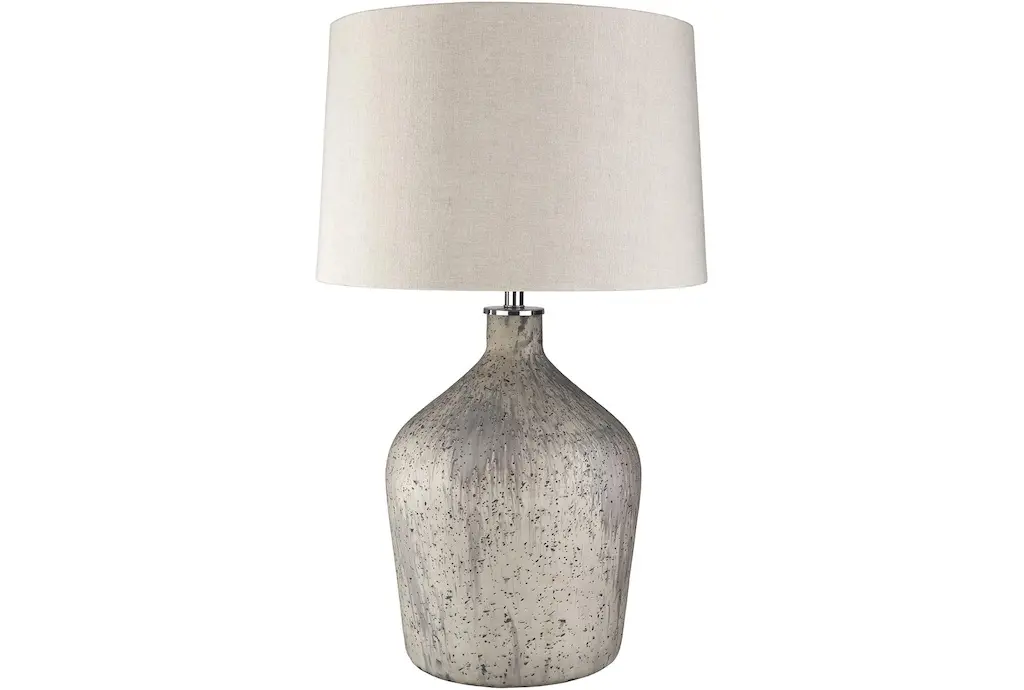 Collection: Margahovit Colors: Beige Material: Body: Ceramic,Shade (Outside): Linen,Shade (Inside): Metal,Finial: Plastic Made In: China Shade Material: LinenMetal Shade Color: WhiteWheat Cord Length: 6' Switch Type: 3-Way Number of Bulbs: 1 Socket Type: E-26 Bulb Wattage: 150W