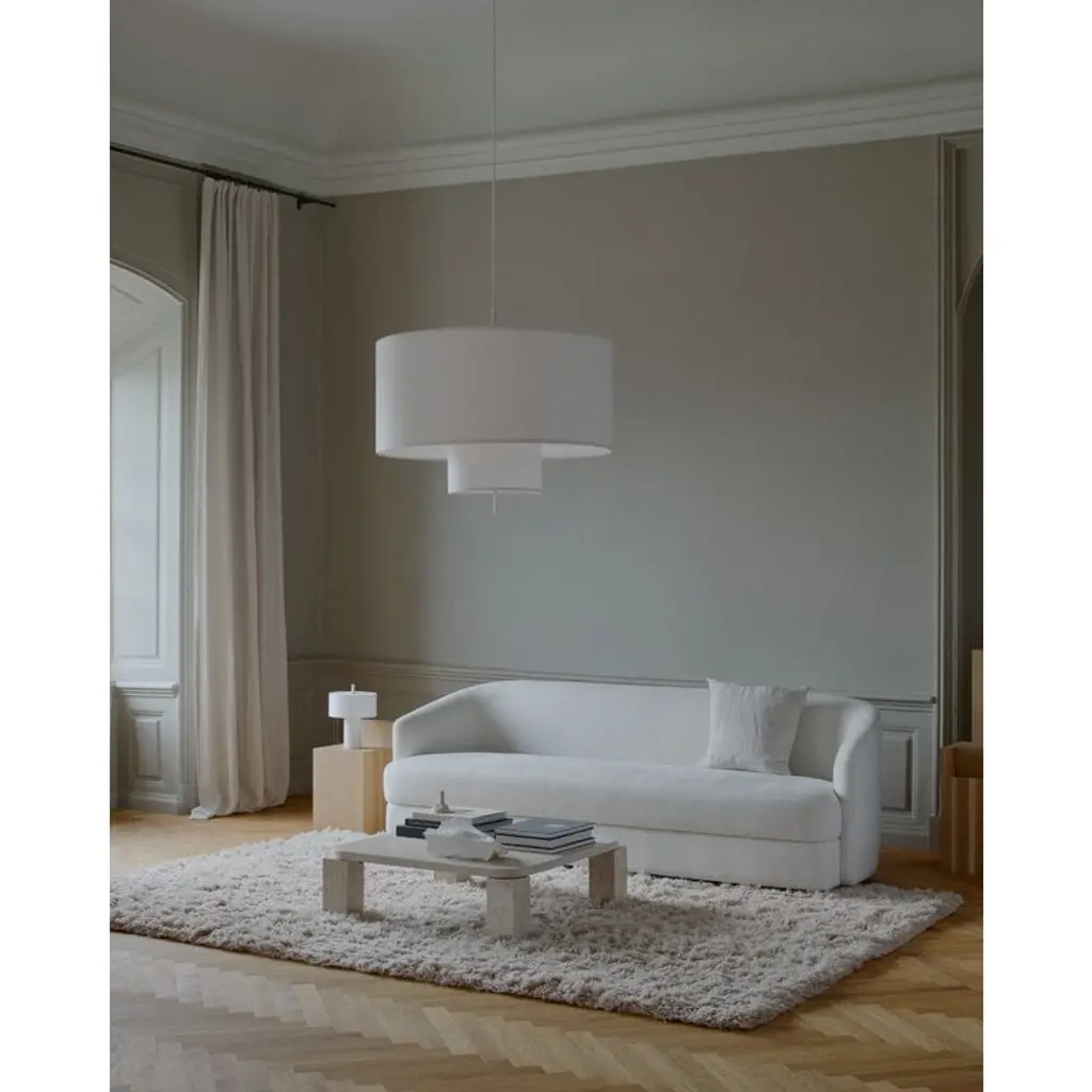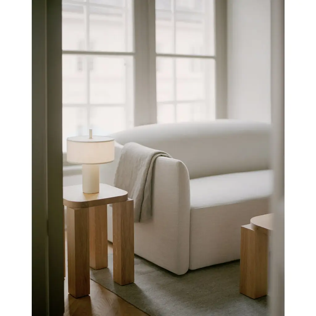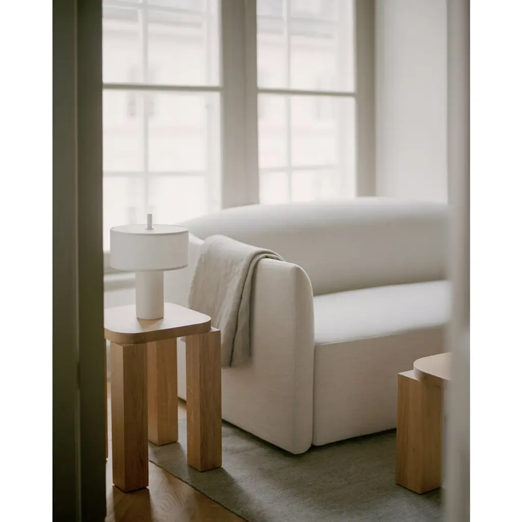The Margin portable table lamp by New Works, designed by John Astbury, features a tiered textile shade that diffuses the light in a pleasant, soft manner, which creates a warm and inviting atmosphere in the room. The shade’s subtle, classic expression is contrasted by the straight line intersecting it, underlining the shade’s geometric form and adding a dash of drama to the luminaire’s silhouette. The portable table lamp features a rechargeable battery that charges via a USB-C cable, and its color temperature can be adjusted from warm white to neutral white. The Margin table lamp makes the perfect addition to a private living room, dining area or a lounge space in a restaurant, café or hotel.