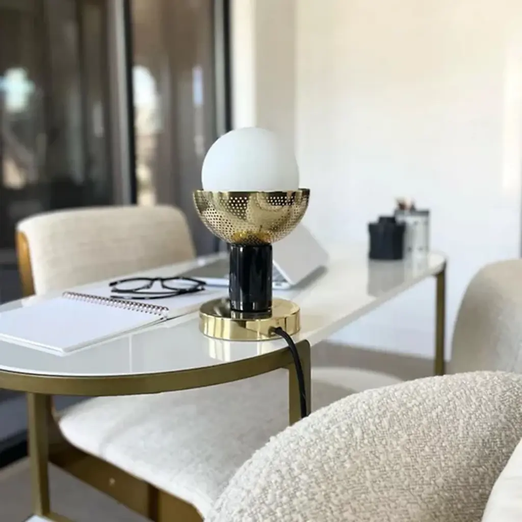 The Maria Table Lamp is a luxury light furnishing presented by Dounia Home. It boasts eco-friendly appeal and artisan-quality craftsmanship. LED illumination offers a long lifespan and low energy consumption. It was handmade in Morocco by ethically compensated Artisans, and each piece at Dounia is made in a small batch for supreme quality. A porcelain LED bulb is included, and the luxe perforated body of the shade adds further visual interest.
