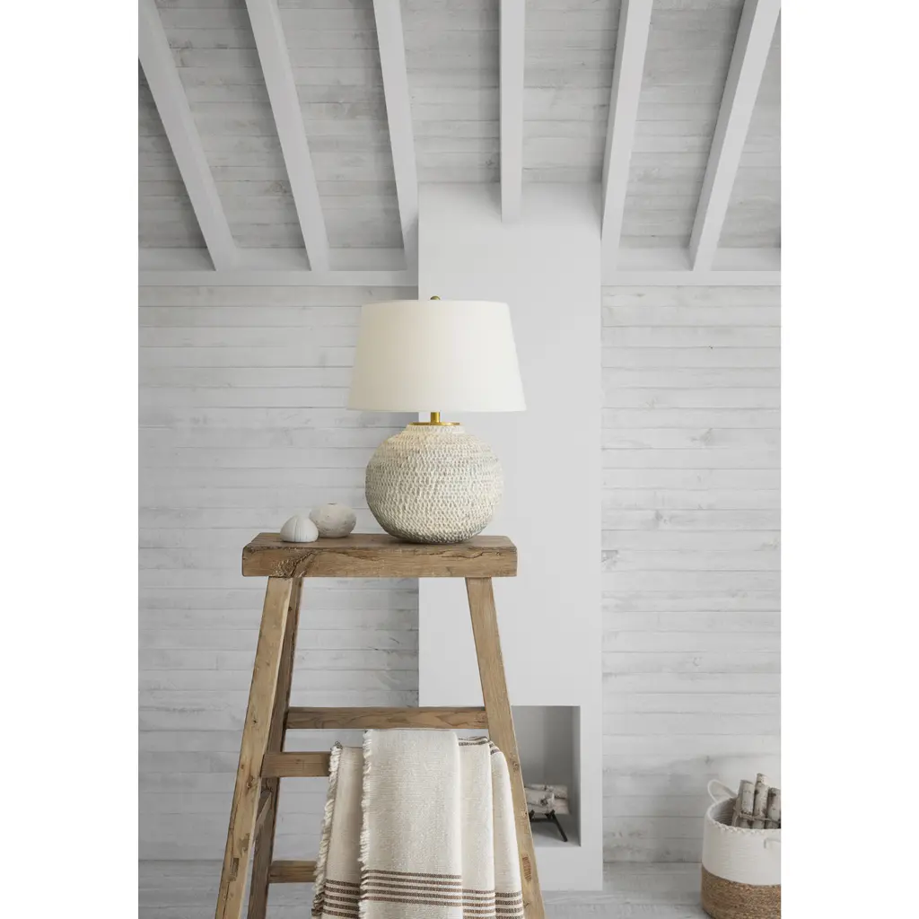 Avedon Small Table Lamp in Plaster White Rattan with Linen Shade