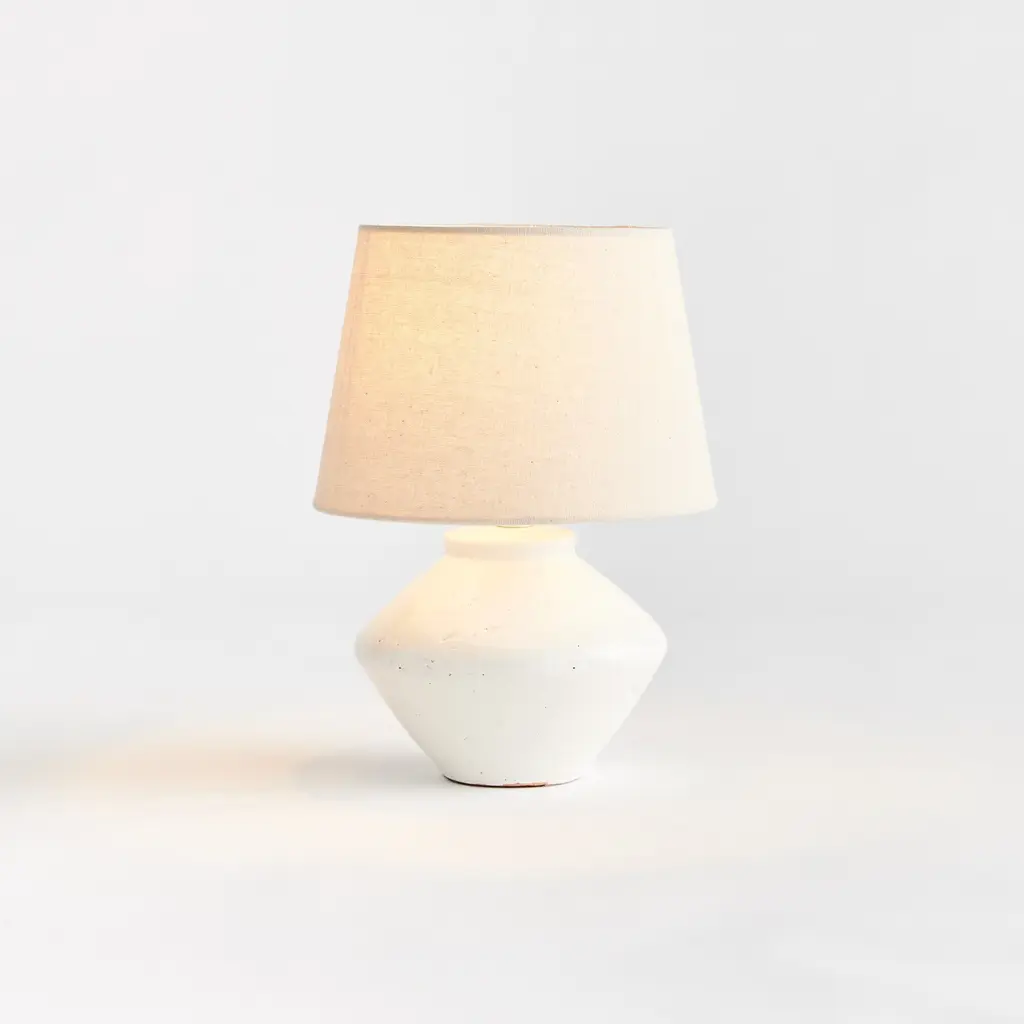 This sleek ceramic mini lamp is at home in any transitional setting. The textured cream shade and petite base make it a versatile piece. Great for kitchen counter, bookshelf or desk.