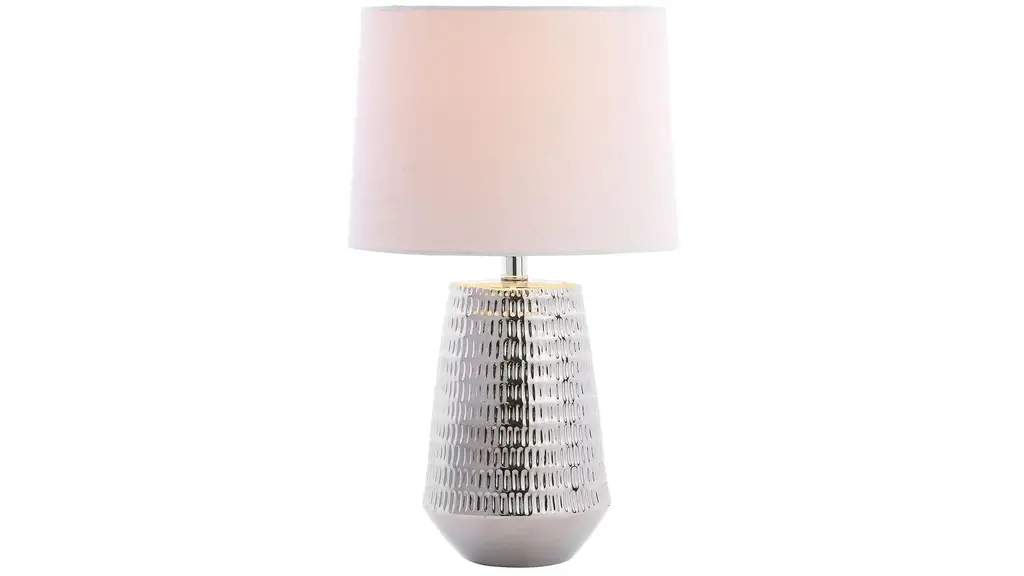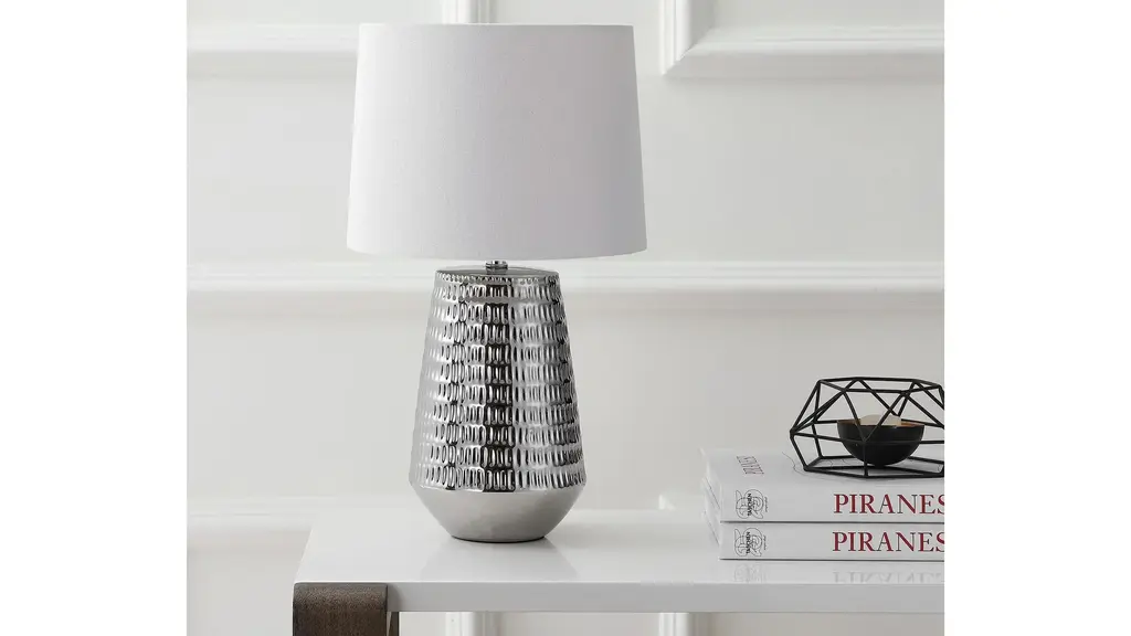 Inspired by the work of modern sculptors, this contemporary Marine Table Lamp brings high style to the living room. Crafted with a subtle, delicate texture, its bold silver finish is refreshing and light. Its tapered shade casts a welcoming glow.