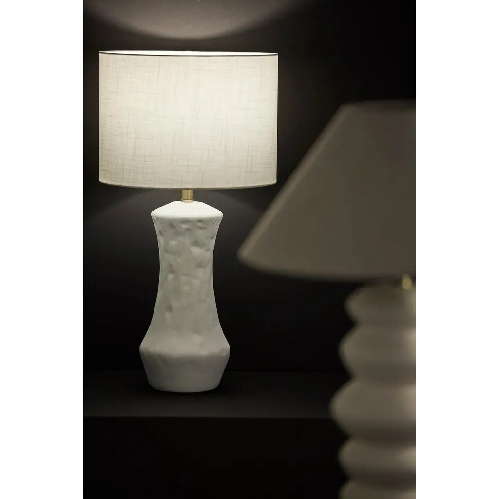 Introducing the 1638-02 Marissa Table Lamp, a timeless and elegant lighting solution that adds a touch of sophistication to any room. This table lamp features a sleek matte white ceramic base that exudes modern simplicity, perfectly complemented by a crisp white fabric shade. Standing at a height of 26 inches, the Marissa Table Lamp is a versatile and stylish addition to your home decor. Designed for ease of use, this table lamp comes with a convenient on/off rotary socket switch, allowing you to control the illumination with a simple twist. With its clean lines and classic design, the Marissa Table Lamp effortlessly combines form and function to elevate your living space. Timeless Elegance: The 1638-02 Marissa Table Lamp boasts a sleek matte white ceramic base and a crisp white fabric shade, creating a timeless and sophisticated look for your home. Versatile Height: Standing at 26 inches tall, this table lamp is suitable for various settings, from bedside tables to living room accents. Effortless Control: The lamp features an on/off rotary socket switch for easy and convenient control over the illumination. Clean and Modern Design: With its matte white ceramic base and white fabric shade, the Marissa Table Lamp brings a modern and minimalist aesthetic to your decor. Functional Simplicity: Elevate your living space with this elegant table lamp, where simplicity meets functionality to enhance the ambiance of your home.