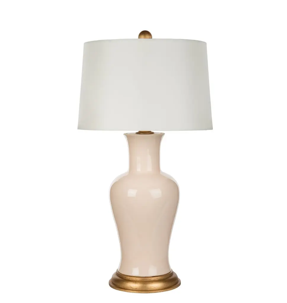 EMMA LAMP - FOG. FOG GLAZE ON CERAMIC WITH ANTIQUE GOLD LEAF MOUNTING