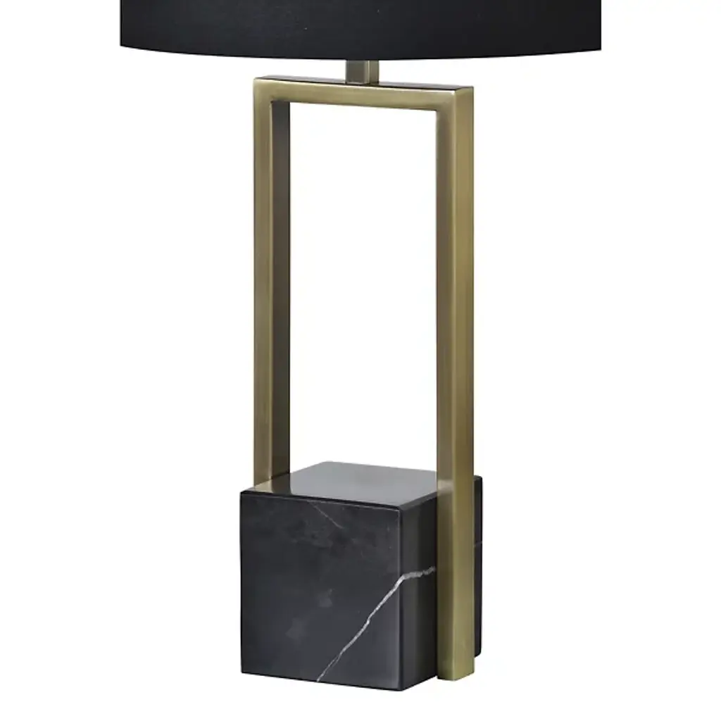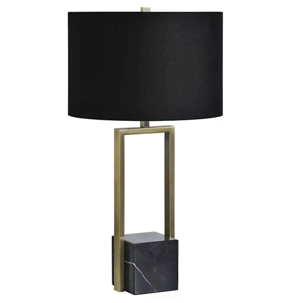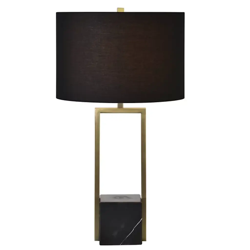 Modern design takes the spotlight with the Marla Table Lamp from Renwil. The pairing of sharp angles, marble, iron, and teteron cotton shade is classy and cosmopolitan. Marla has the capacity to bring a brilliant glow to your industrial-themed interior. The eye is drawn to this table lamp’s neatly framed, cube-shaped marble base.