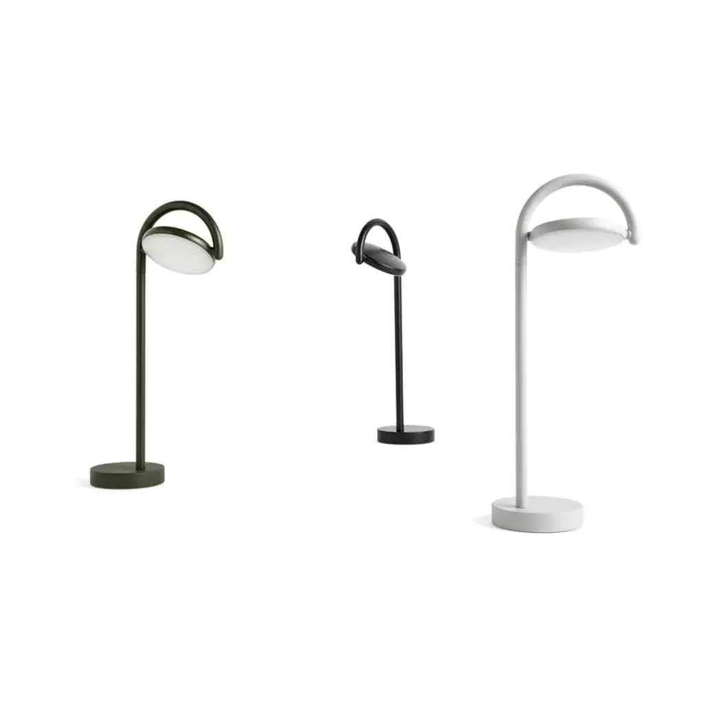 HAY’s Marselis table lamp is characterized by a fine balance between soft, rounded shapes and industrial esthetics. Created by design duo KaschKasch from Cologne, the arched body of Marselis was inspired by silhouettes of local street signs. The metal body is complemented with a dimmable LED unit that can be adjusted between a direct task light and indirect ambient light. Thanks to its sleek design and adjustability, Marselis makes a perfect for luminaire for work and leisure alike.