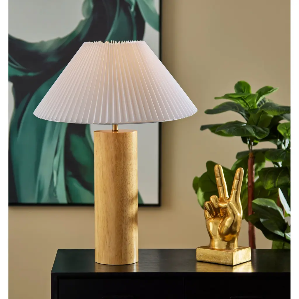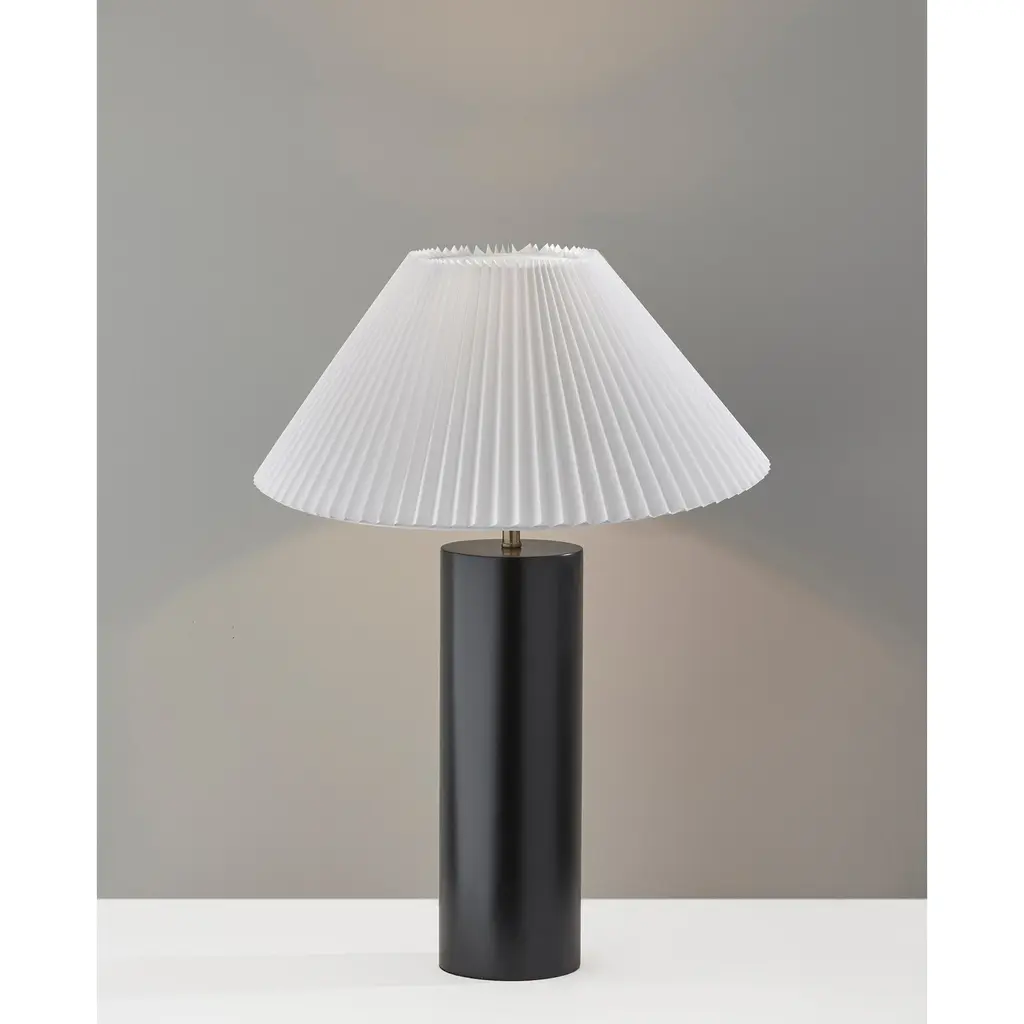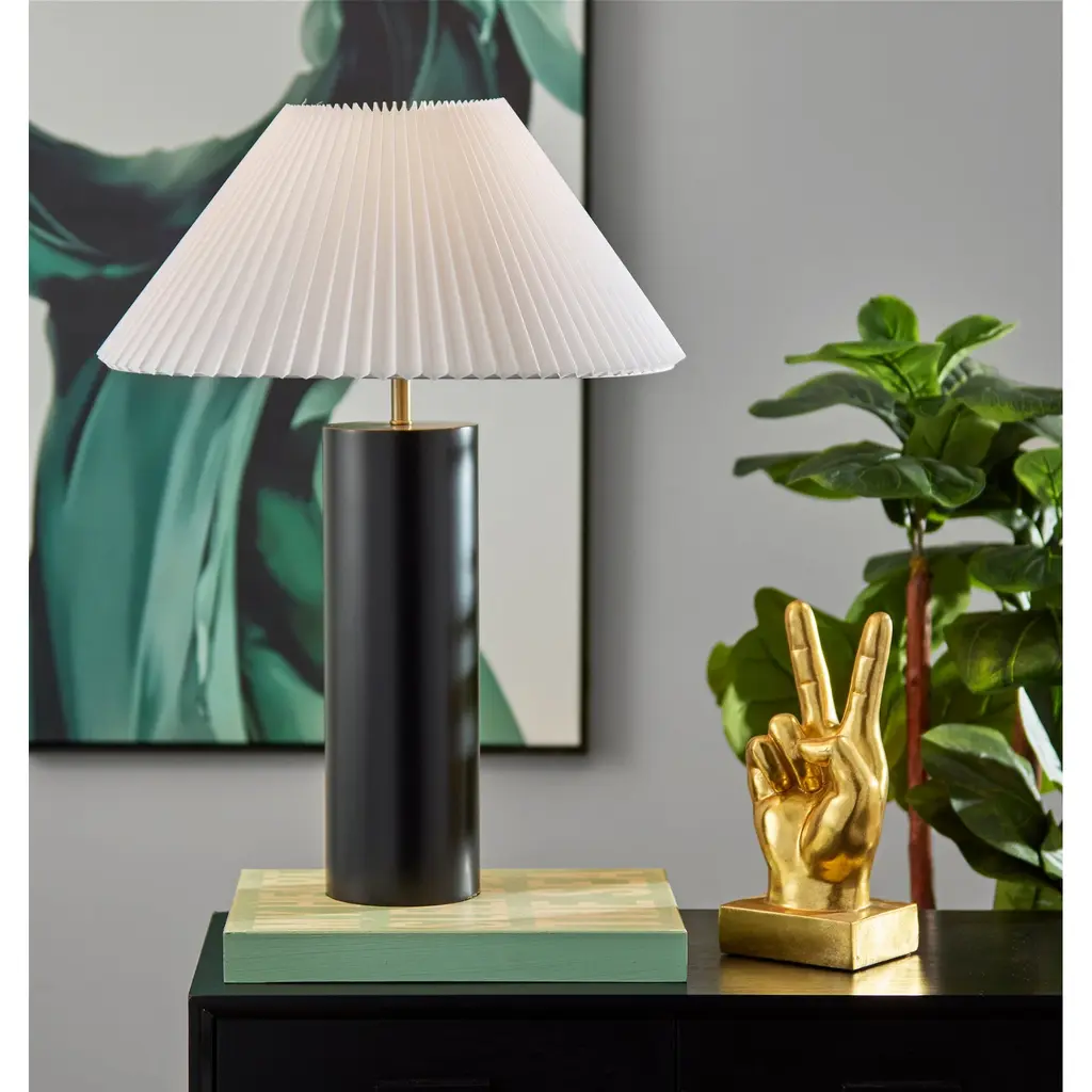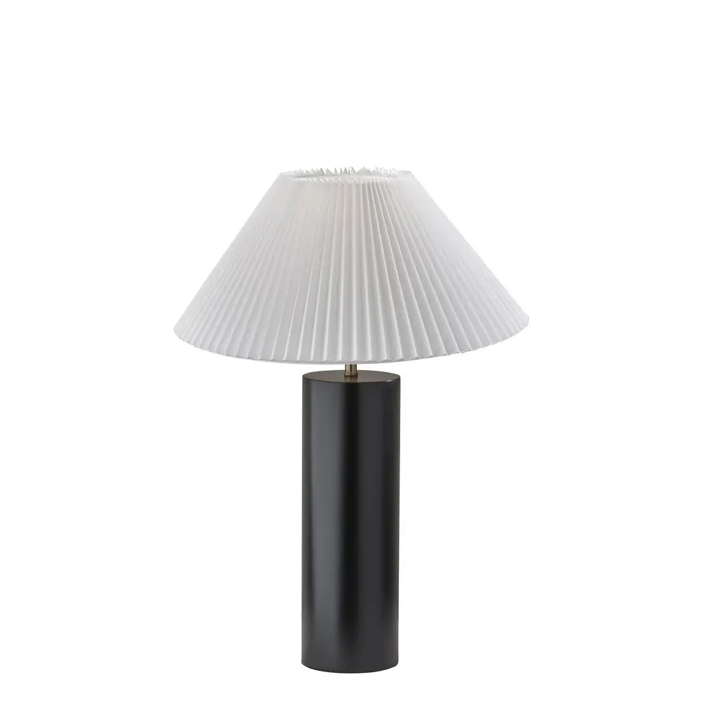 Illuminate your surroundings with the Marta Table Lamp, featuring a sleek black wood base and a White Pleated Fabric shade that exudes timeless appeal. Standing tall at 25.5 inches, this lamp commands attention while casting a warm and inviting glow. With its on/off rotary socket switch, achieving the perfect ambiance is as easy as a twist. Elevate your décor with the Marta Table Lamp - where style meets functionality in perfect harmony. -Elegant Design: Black wood base paired with a White Pleated Fabric shade creates a sophisticated aesthetic that complements any décor. -Impressive Height: Standing at 25.5 inches tall, this lamp commands attention and adds a striking presence to any room. -Effortless Control: Equipped with an on/off rotary socket switch, adjusting the lighting to suit your mood is as simple as a twist of your wrist. -Quality Craftsmanship: Meticulously crafted with attention to detail, the Marta Table Lamp boasts durability and longevity, ensuring years of enjoyment. -Versatile Placement: Whether adorning your bedside table, illuminating your living room, or enhancing your office space, the Marta Table Lamp adds a touch of sophistication wherever it's placed.
