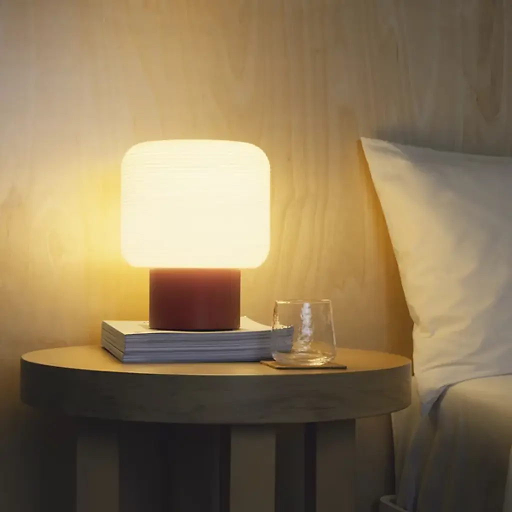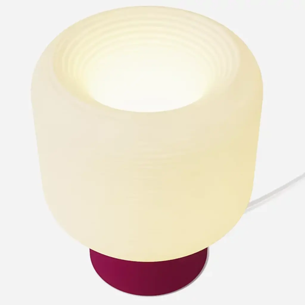 The Maskor Table Lamp from Gantri presents a tasteful modern creation created by the Murka Design Lab, a prolific industrial design studio from Basque Spain; its designers keep their focus on the Slow Design movement, focusing on locally sourced, sustainable art that helps people stay centered. Named for the Basque word for 'seashell,' its simple opaque polymer elevates a ribbed diffuser that layers concentric rings around a powerful inner light. The diffuser is made from Gantri Plant Polymers from non-GMO sugarcane grown on Thai farms, casting a welcoming glow in all directions.