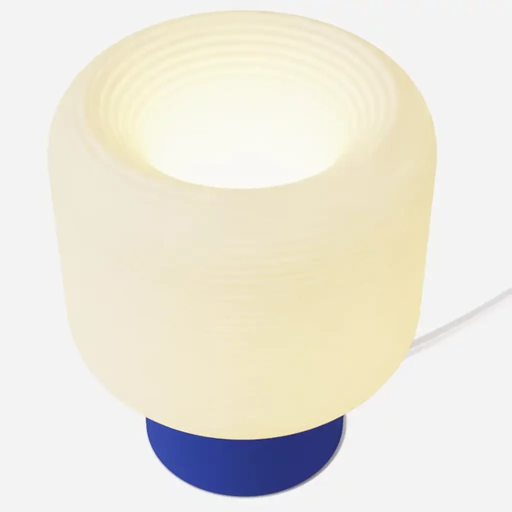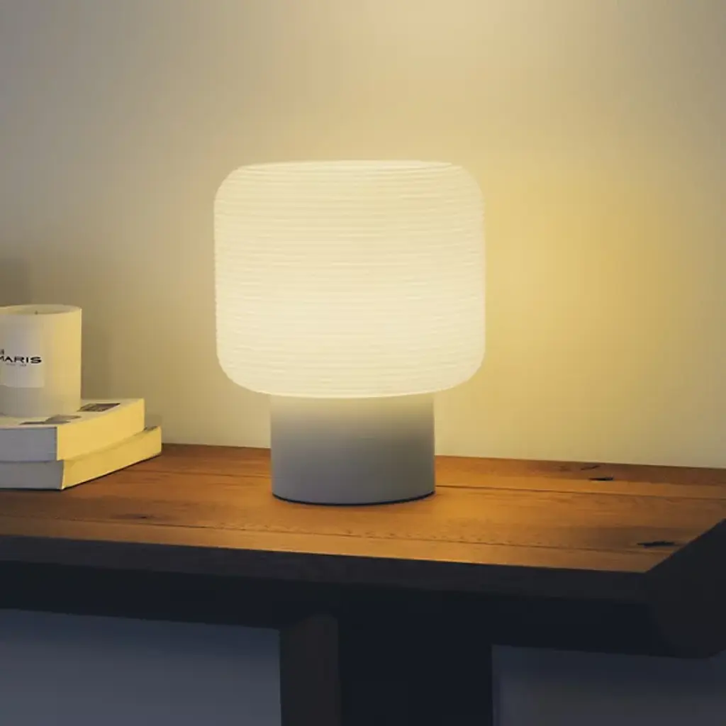The Maskor Table Lamp from Gantri presents a tasteful modern creation created by the Murka Design Lab, a prolific industrial design studio from Basque Spain; its designers keep their focus on the Slow Design movement, focusing on locally sourced, sustainable art that helps people stay centered. Named for the Basque word for 'seashell,' its simple opaque polymer elevates a ribbed diffuser that layers concentric rings around a powerful inner light. The diffuser is made from Gantri Plant Polymers from non-GMO sugarcane grown on Thai farms, casting a welcoming glow in all directions.